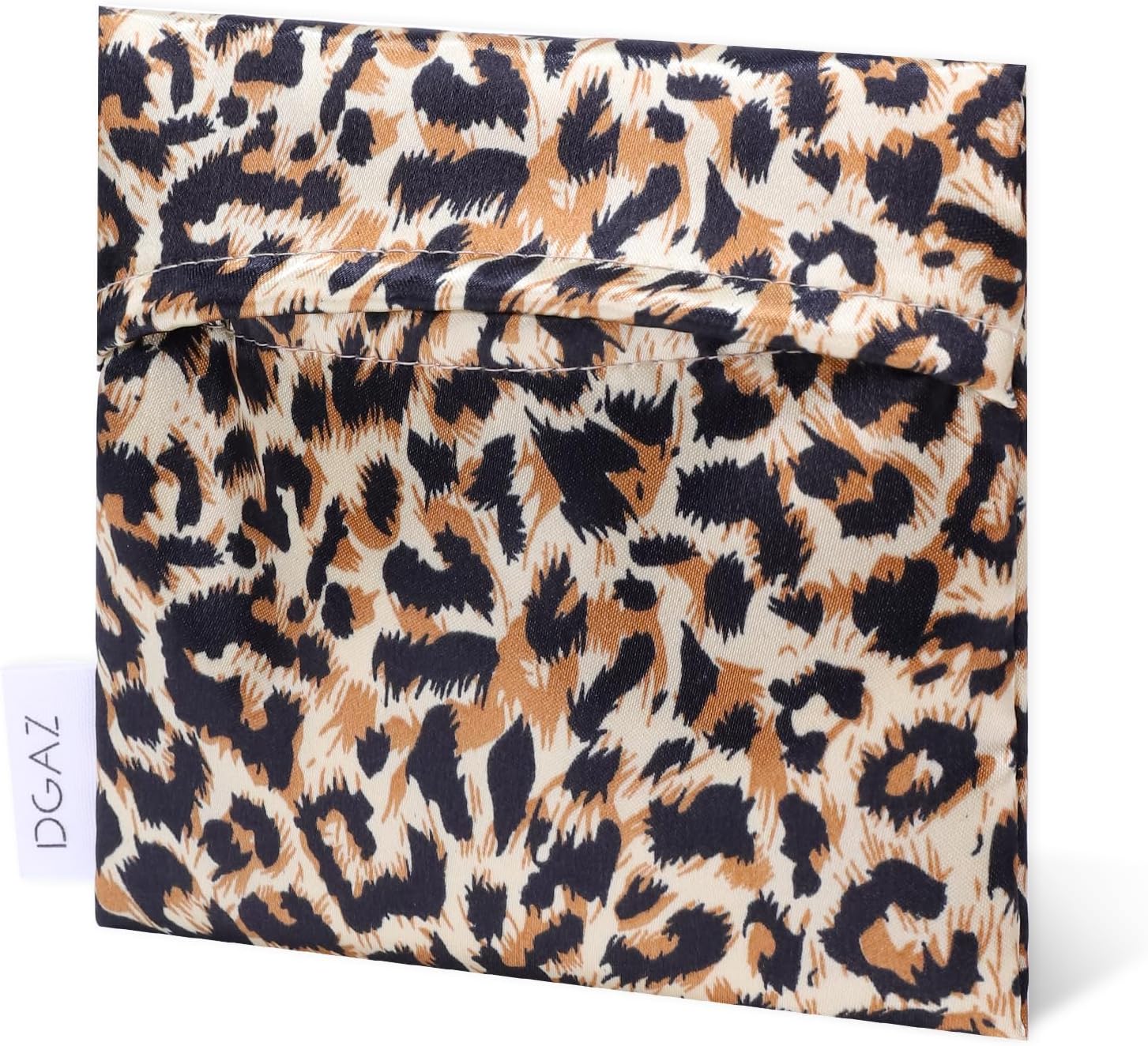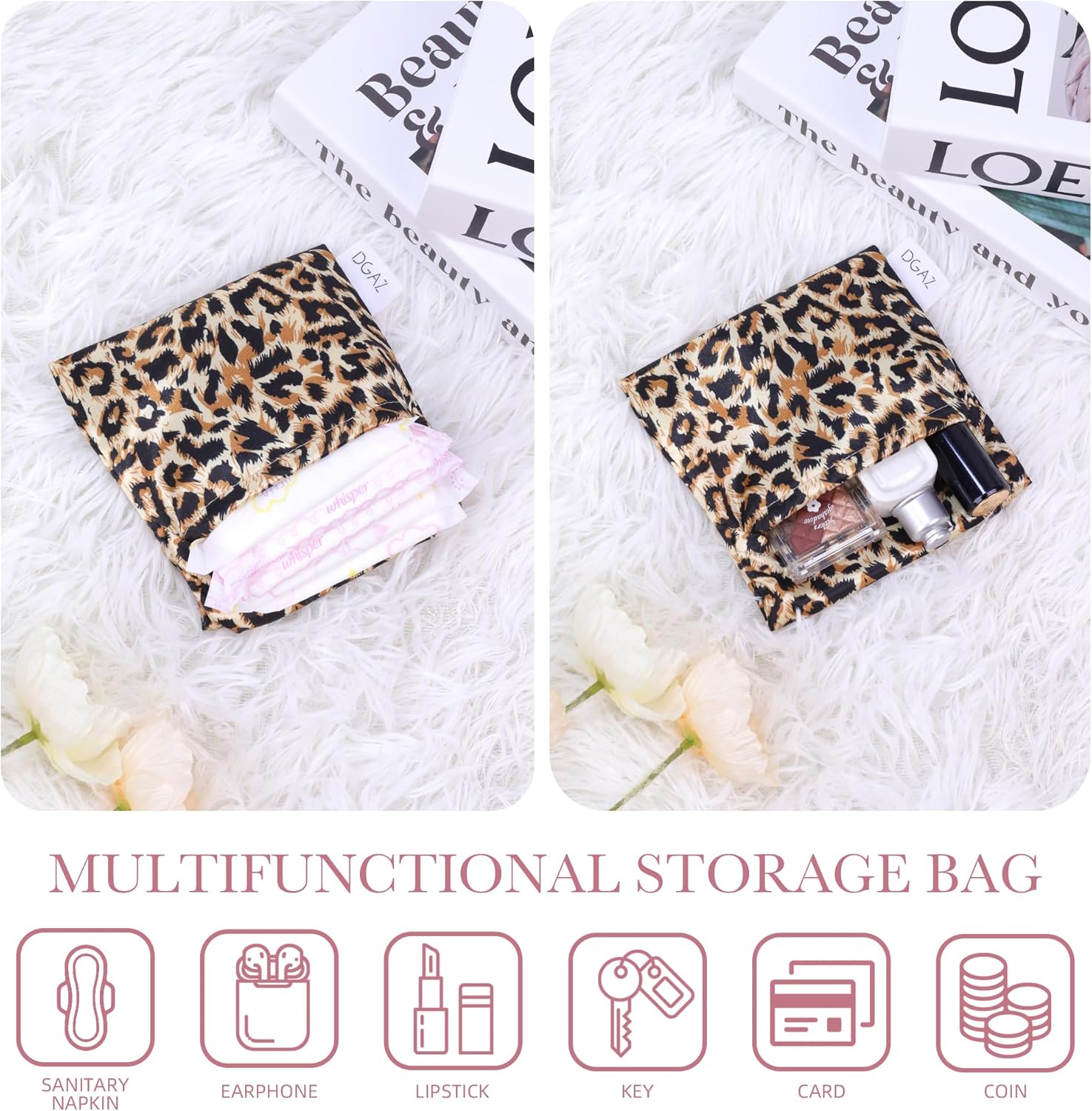 DGAZ Sanitary Napkin Storage Bag, Period Bag for Teen Aged Girls, Portable Period Bag for Panty Liners/Menstrual Cup/Small Tampons,Mini Makeup Bag for Purse(Leopard A)