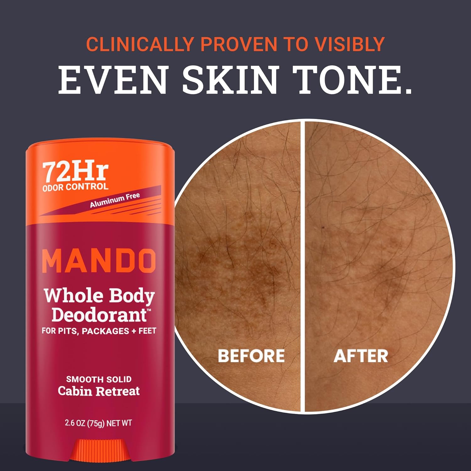 Mando Whole Body Deodorant For Men - Smooth Solid Stick - 72 Hour Odor Control - Aluminum Free, Baking Soda Free, Skin Safe - 2.6 Ounce (Pack of 2) - Cabin Retreat Limited Edition Scent