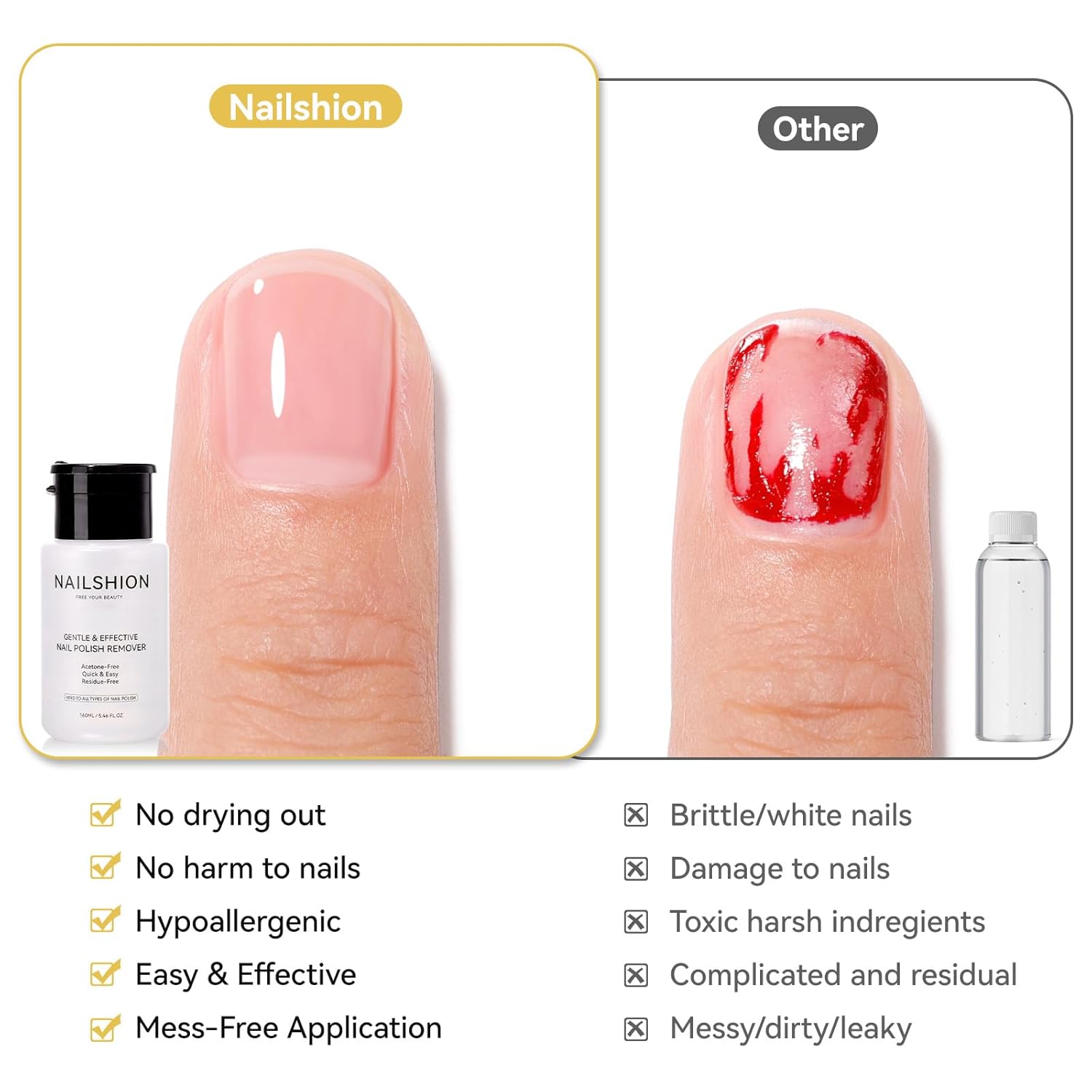 - No Harsh Ingredients & Gentle for Sensitive Nails: Formulated with safe, non-toxic ingredients, this travel-friendly natural nail polish remover is free from acetone, fragrance, artificial color, parabens, phthalates, and formaldehyde. Vegan & cruelty-free products, ensuring they are gentle for sensitive nails. Hypoallergenic