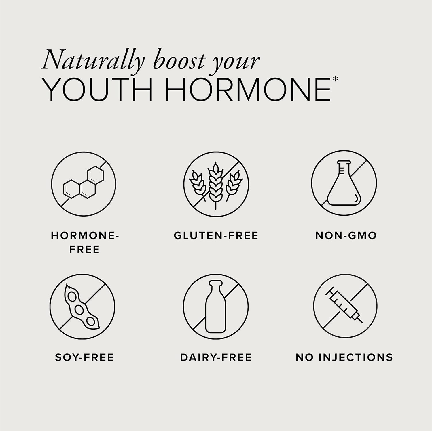 - L-lysine hydrochloride, L-arginine hydrochloride, extract of fermented L-cysteine, L-glutamine, oxo-proline, and schizonepeta: The highly precise blend that makes up the Renewal Complex supports enhanced pituitary function associated with vibrant energy, youthful skin, and increased lean muscle.*