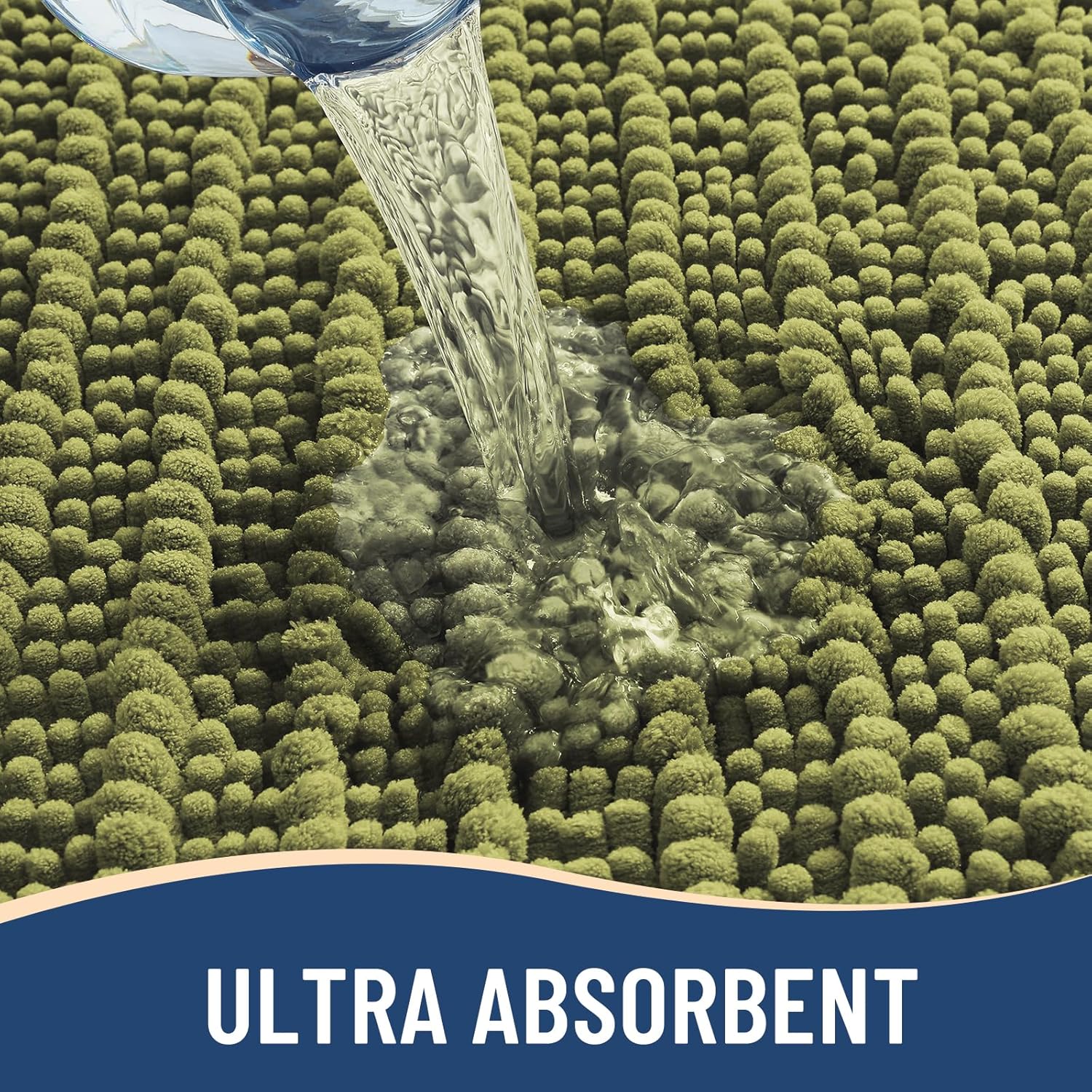 Arotive Luxury Chenille Bathroom Rug Mat, Extra Soft Thick Absorbent Shaggy Bath Rugs, Non-Slip Machine Wash Dry, Plush Bath Mats for Bathroom, Shower and Tub, 30x20, Willow Green