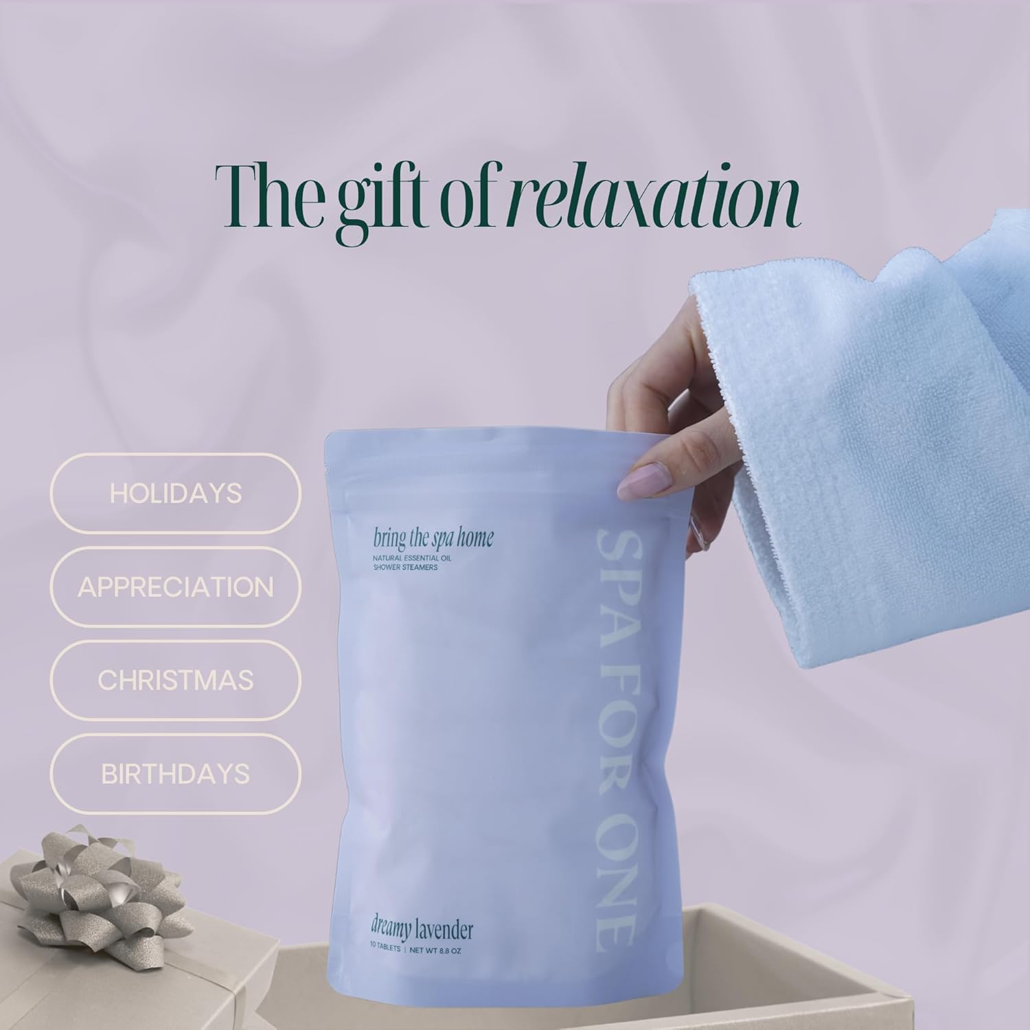 - BRING THE SPA HOME: Place one steamer on the shower floor and let the scent of lavender fill the room, transforming your shower into a serene self-care ritual. Perfect for natural stress relief, or as a thoughtful Christmas gift for Mom, teacher appreciation, or a self-care birthday present.