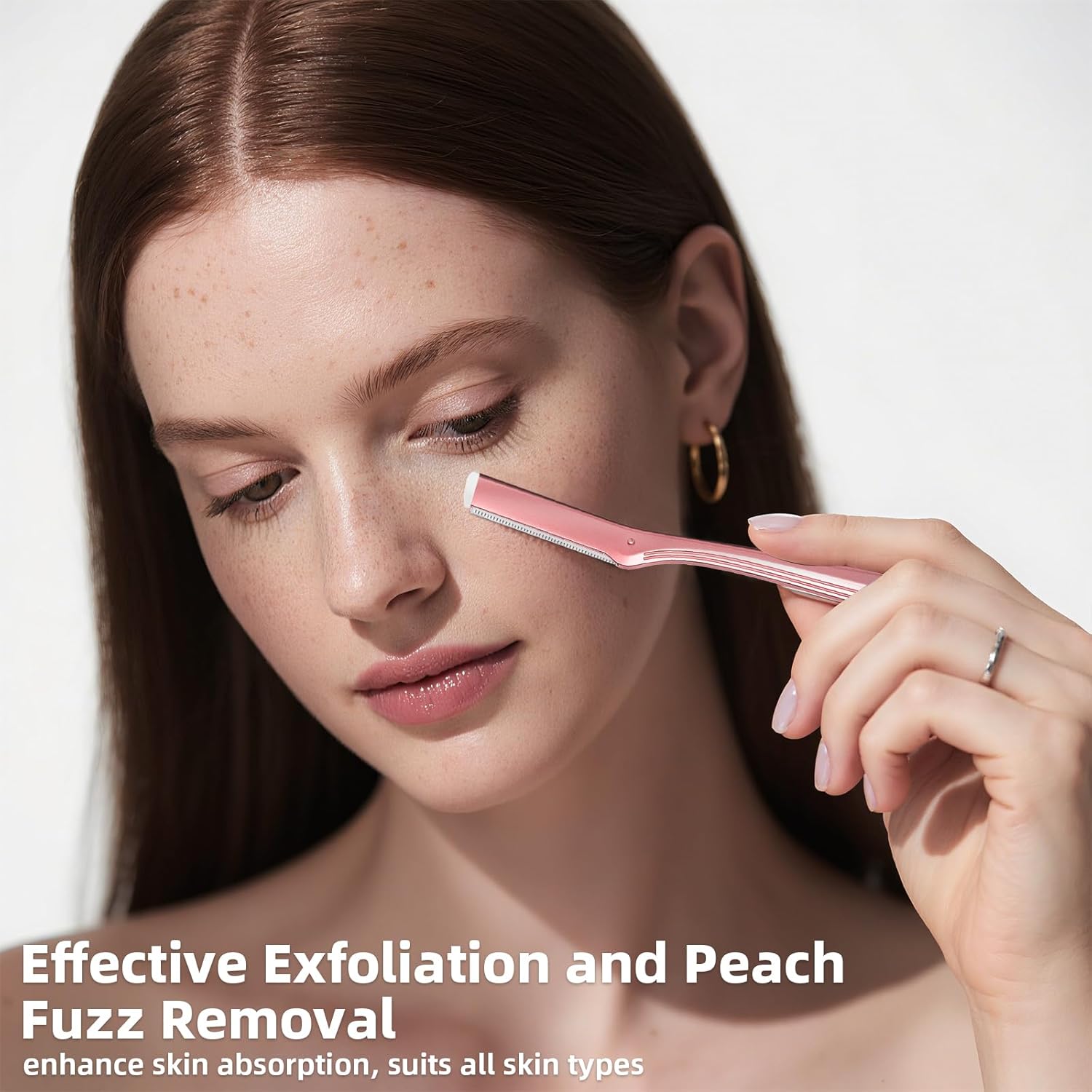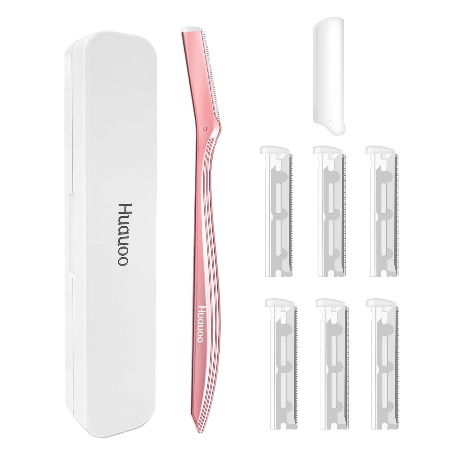 - Professional Home Dermaplaning Razor: This facial razor for women includes 6 extra blade refills for salon-quality brow sculpting and peach fuzz removal. HUAUOO exfoliating dermaplane tool effectively eliminates dead skin cells and unwanted hair, leaving skin smooth and radiant.