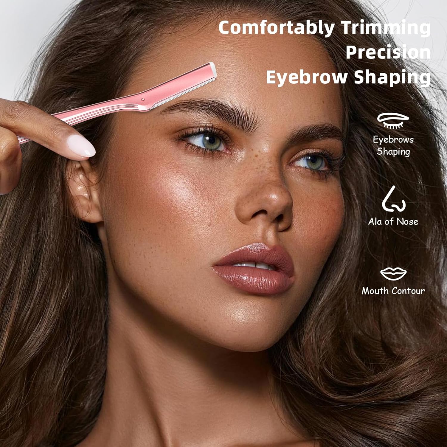 - Ergonomic and Sustainable Option: Designed with ergonomic contours, this eyebrow razor adapts to all hand sizes for flexible and precise control. The weighted metal handle offers fatigue-reducing comfort, while its reusable construction balances superior performance and sustainability.