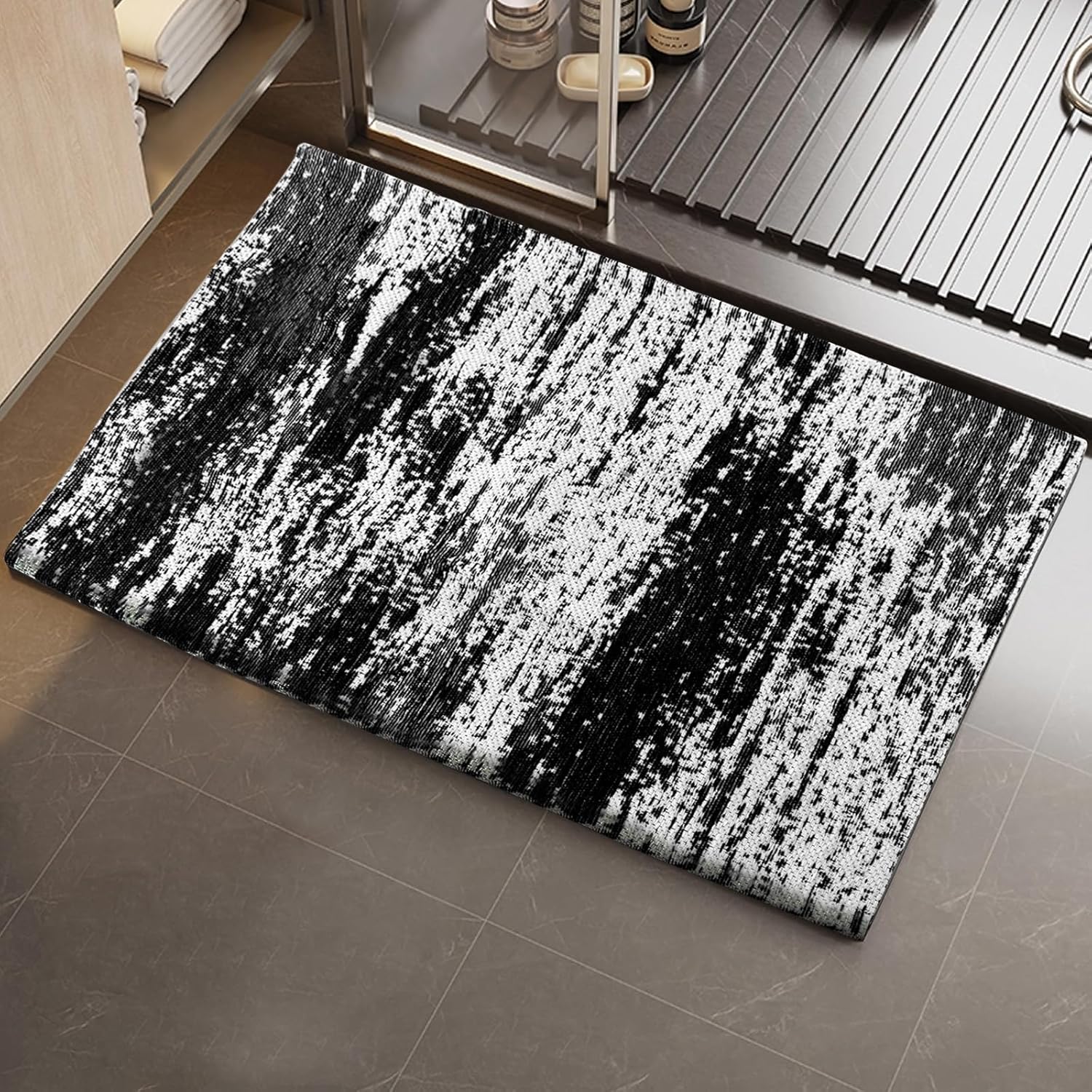 - ABSORBENT DOODLE-EMBOSSED SURFACE. Artistic black doodle patterns enhance rapid water wicking through woven fibers; Efficient moisture capture minimizes puddles then dries 30% quicker than standard bath mats
