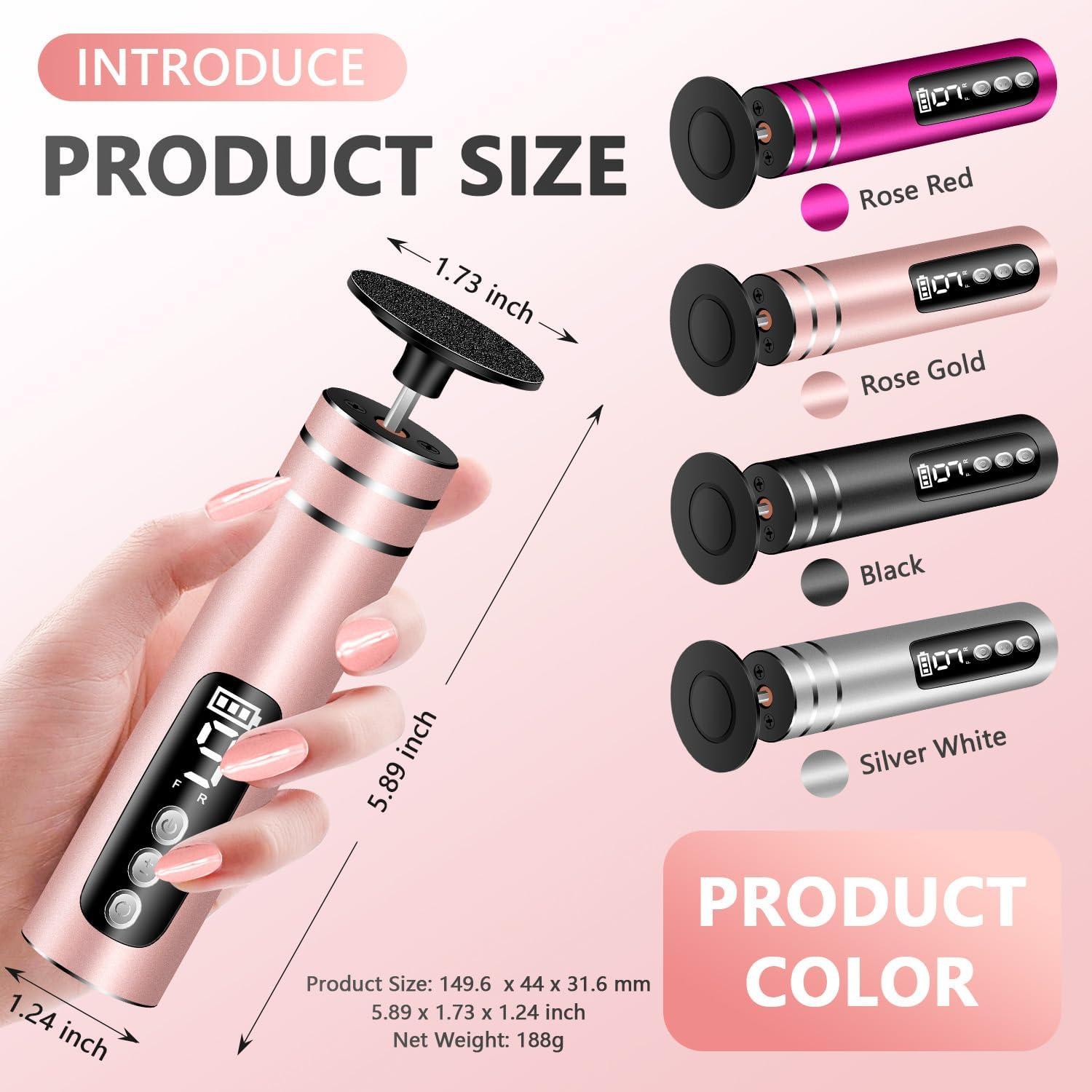 EAONE Portable Electric Foot File-Callus Remover for Feet, Professional 2 in 1 Foot/Nail Filer -Digital Display for Battery Level & 9 Speed Control-Rechargeable Pedicure Tool for Dead Skin (Rose Gold)