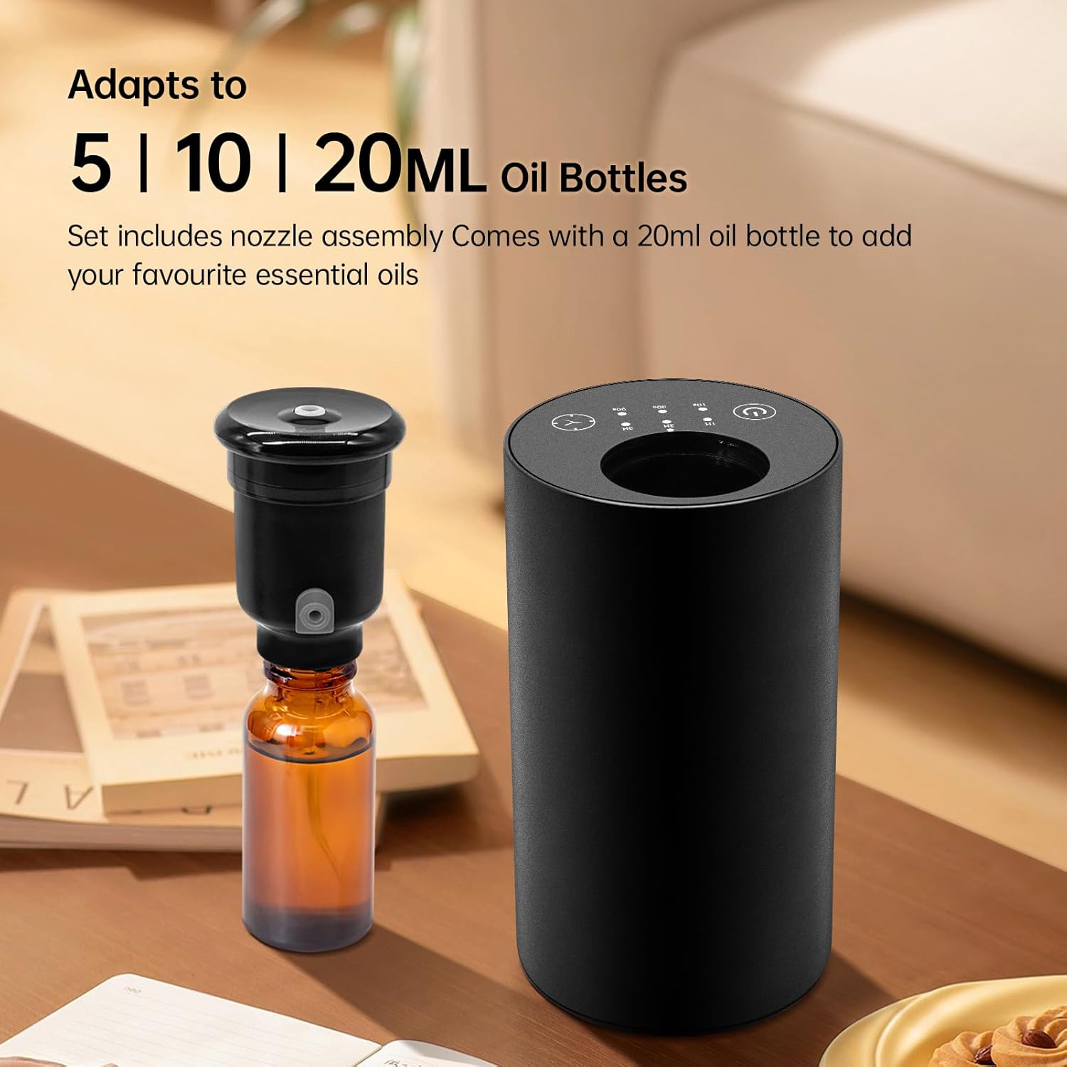 Waterless Essential Oil Diffuser, Battery Operated Mini Scent Air Machine for 5ml/ 10ml/ 20ml Essential Oils, Aromatherapy Diffuser with 3 Countdown Timers & 3 Mist Levels for Home, Car, Office