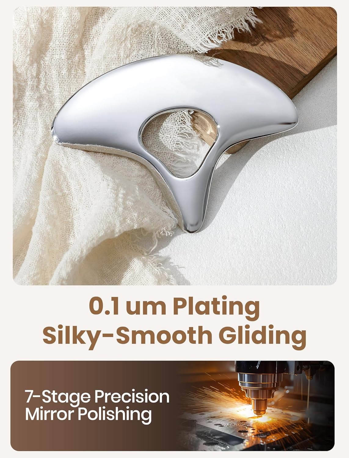 - Gua Sha: Gua Sha releases stagnant energy (chi) to enhance circulation. The mirror-finished Gua Sha Tool glide smoothly without scratching the skin. Compatible with massage oils and lotions for effortless movement, fit for facial & body gua sha.