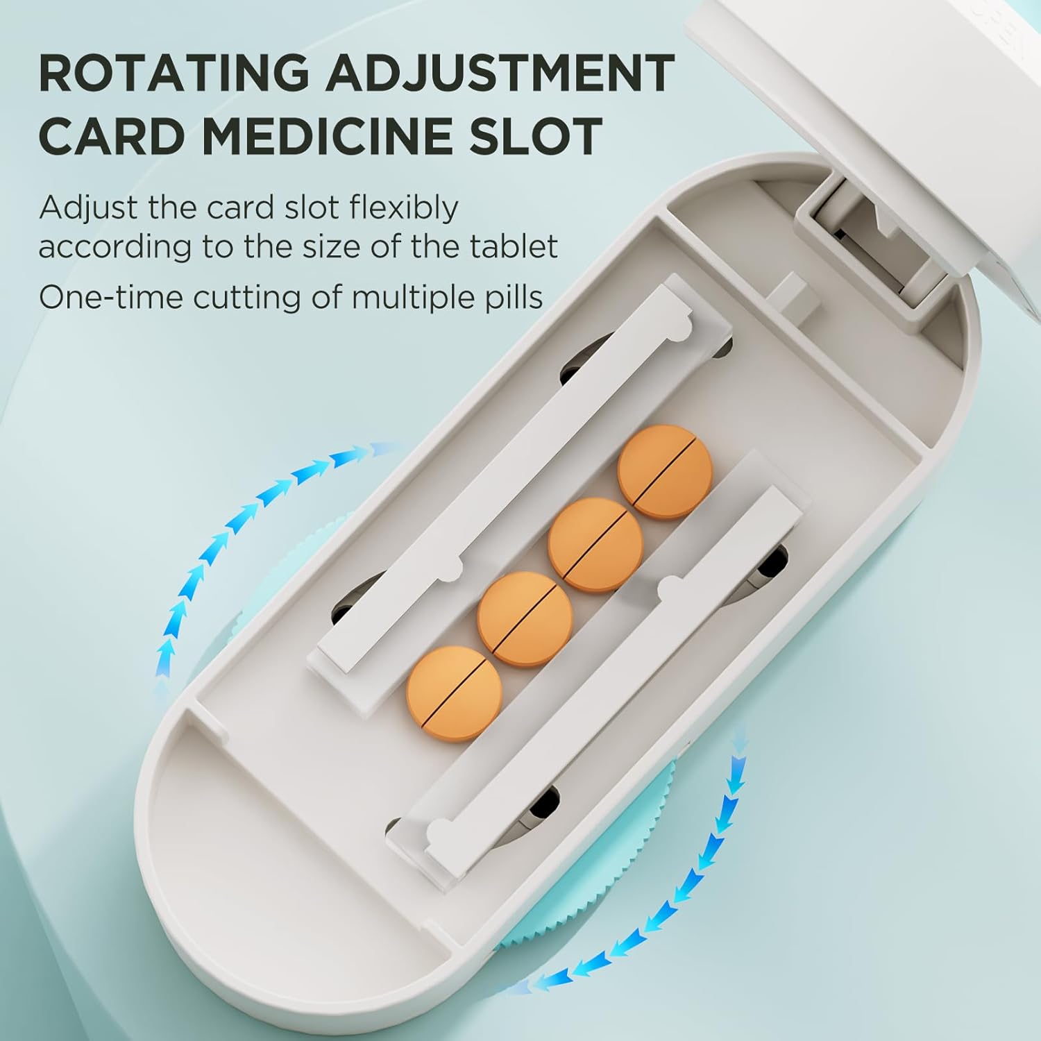 - 【𝐇𝐢𝐝𝐝𝐞𝐧 𝐬𝐡𝐚𝐫𝐩 𝐛𝐥𝐚𝐝𝐞 𝐝𝐞𝐬𝐢𝐠𝐧】Focusing on user safety, the new design of the hidden blade style pill cutter splitter with safety shield, don't worry about cutting your fingers. if the Product doesn't cut pills properly, please check the Pill Size, Pills Cutter are very suitable for cutting in half, but the pills need to be in a suitable size, Attention: Pills wrapped in sugar cannot be cut, Not all pills can be cut, please consult your prescribing docctor before use Pill Cutter.