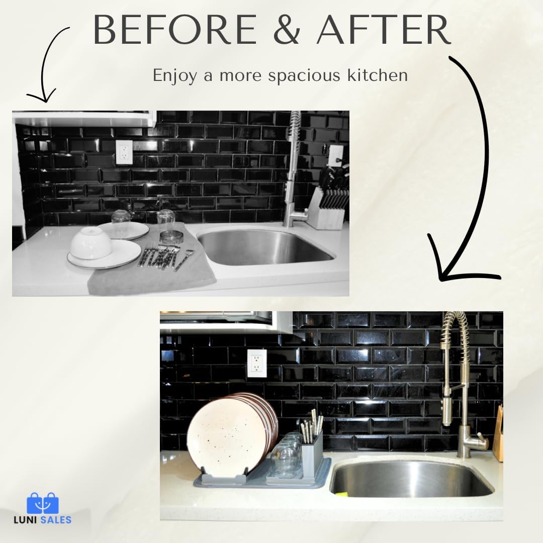 - PERFECT FIT FOR ANY SPACE – Whether your space is big or small, our kitchen drying mats for countertops are spacious, easy to fold, and store in seconds. The kitchen dish drying mat that adapts to your needs.