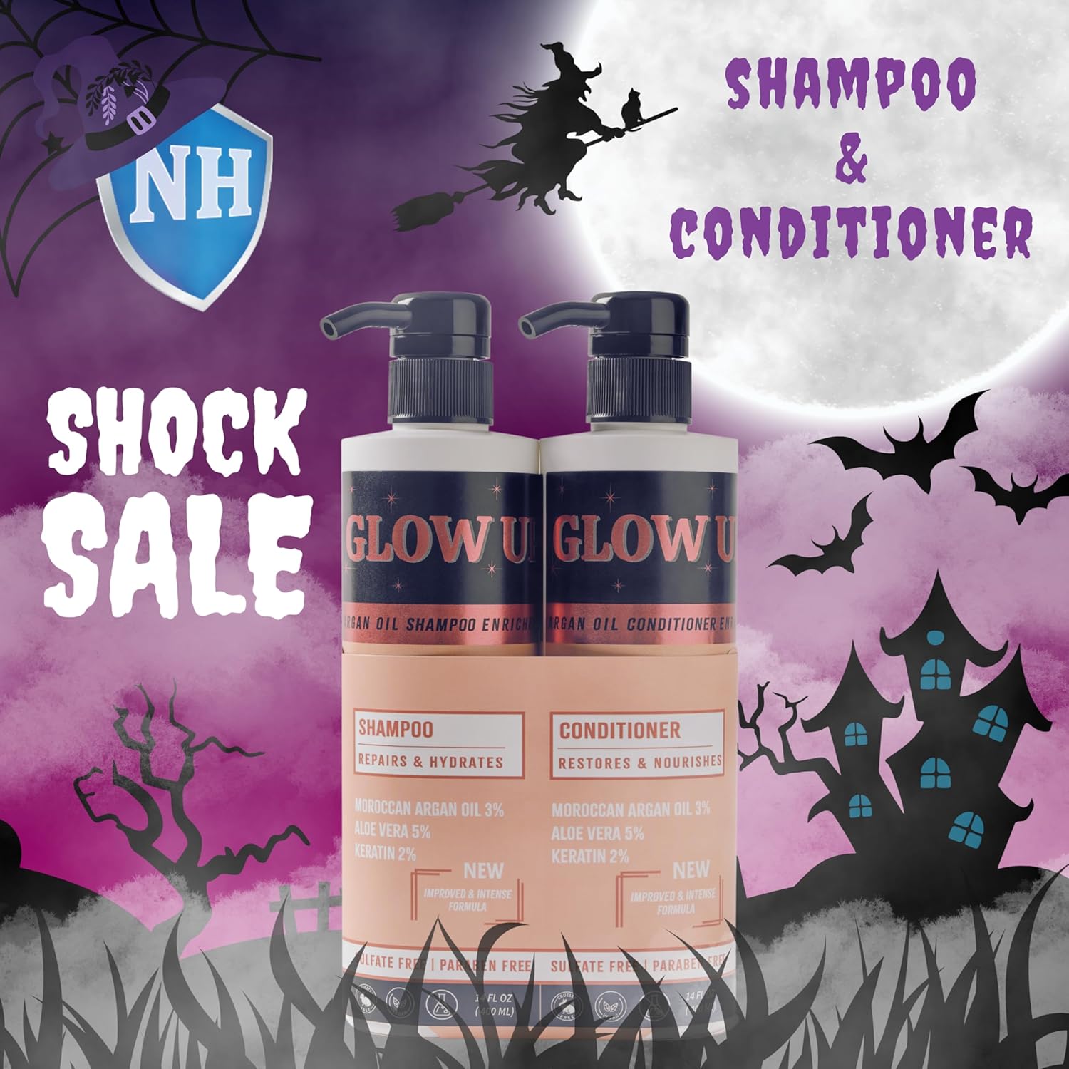 - Sulfate and Paraben Free: Say goodbye to harsh ingredients and hair-drying products. With the sulfate and paraben-free Glow Up shampoo and conditioner set infused with Moroccan Argan Oil, it deeply hydrates and nourishes your hair.