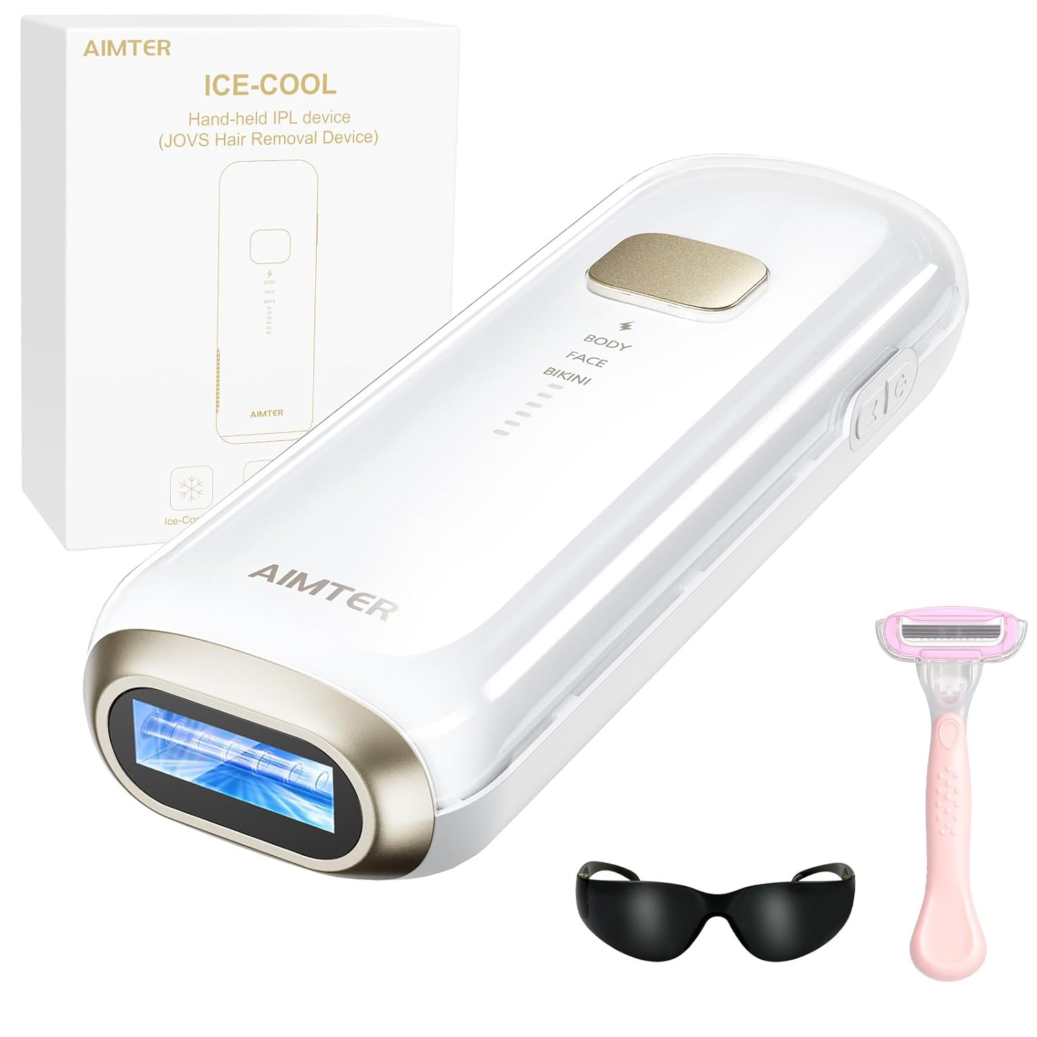 - 【Painless Sapphire IPL Hair Removal Device】The AIMTER Laser Hair Removal features a sapphire cooling system that instantly cools the flash outlet temperature to 37°F, significantly reducing skin irritation from the pulsed light, making it safer to use on sensitive areas. The cooling system allows women to achieve permanent hair removal in just one step - no need for gel, cream, or ice packs.