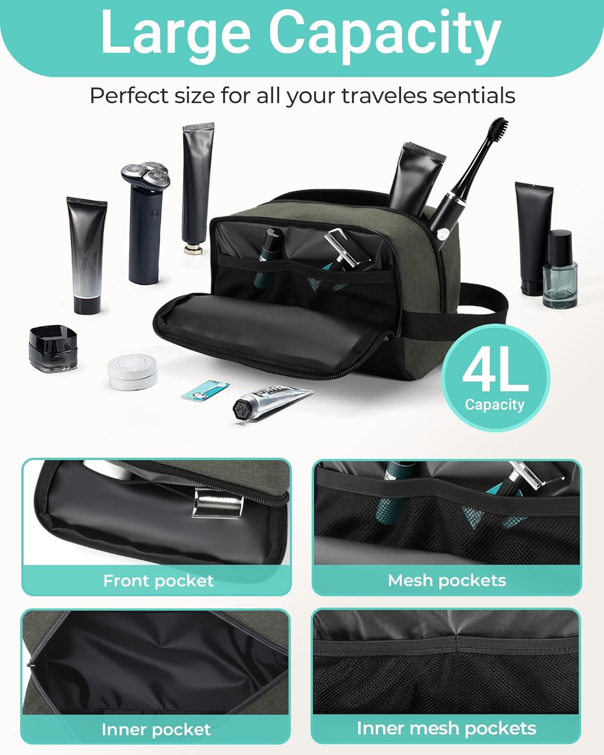 Elviros Travel Toiletry Bag for Men Hanging Dopp Kit Shaving Bag Toiletries Organizer Small Tool Medicine Hygiene Bag for Traveling Pouch (Ash Green)