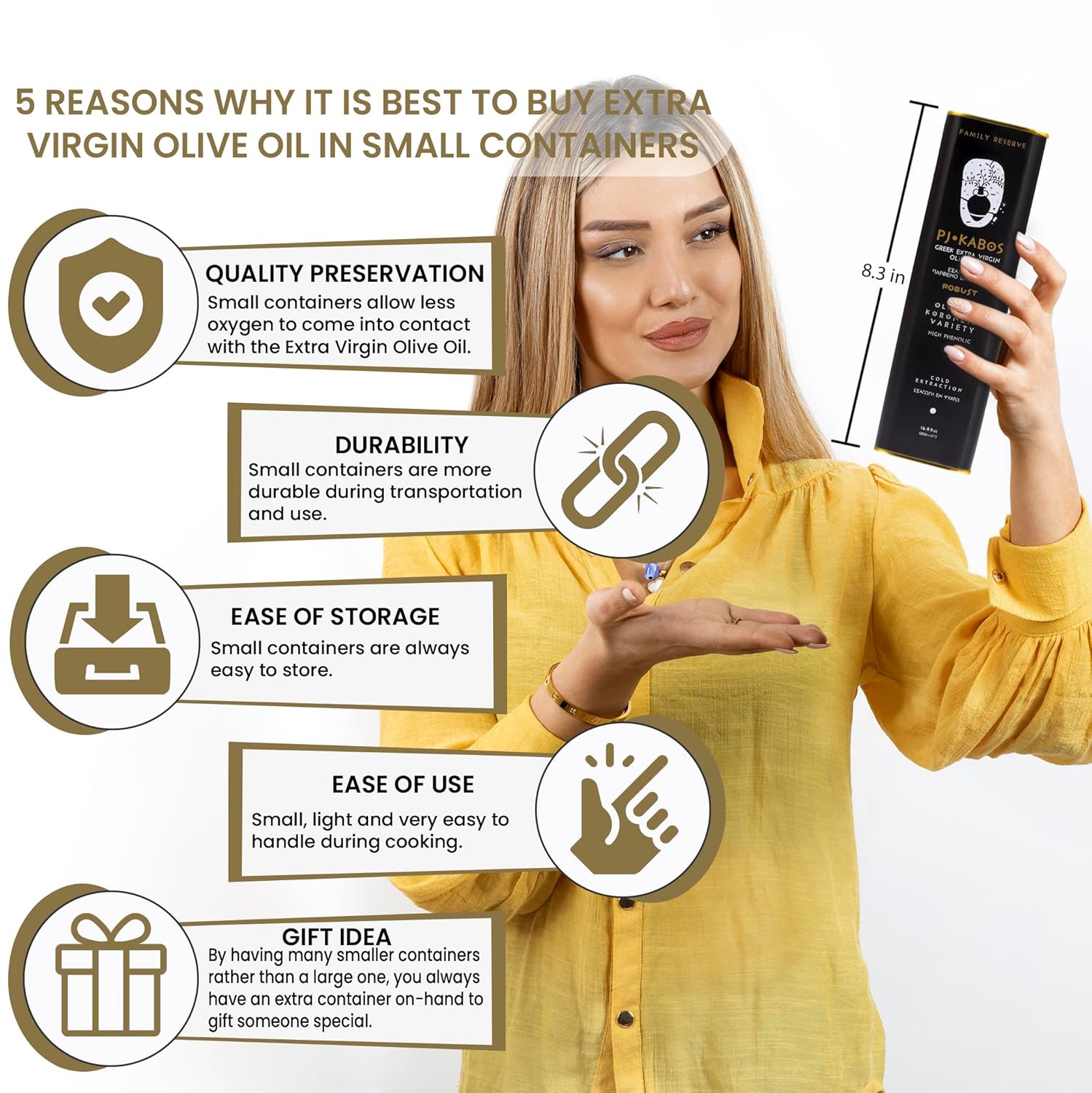 - 2024/25 Fresh Harvest, ultra-premium, clean taste, hand harvested in October of 2024 (the olive harvest season lasts from September to February of every year, and is named after the new year). Comes in an elegant 16.9 fl oz tin which is easy to store, easy to handle (you don’t need a dispenser bottle or sprayer as it has a great pouring spout). Great business or personal gift idea. Best Before June 2026.
