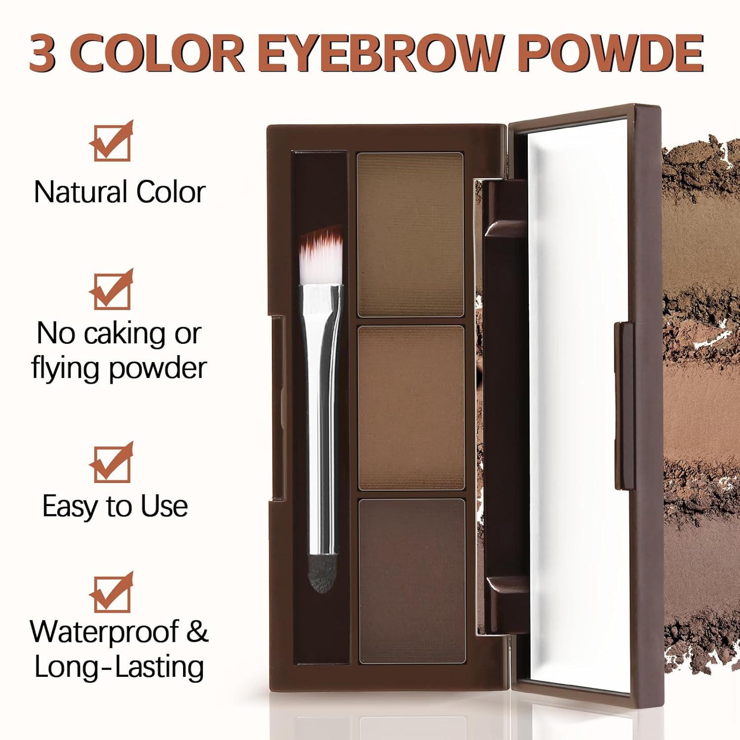 - Natural Eyebrow Makeup: 3 Color eyebrow powder palette is a creamy, highly pigmented for a natural color. The blendable brow powder provides a neutral sculpted look to your brows.