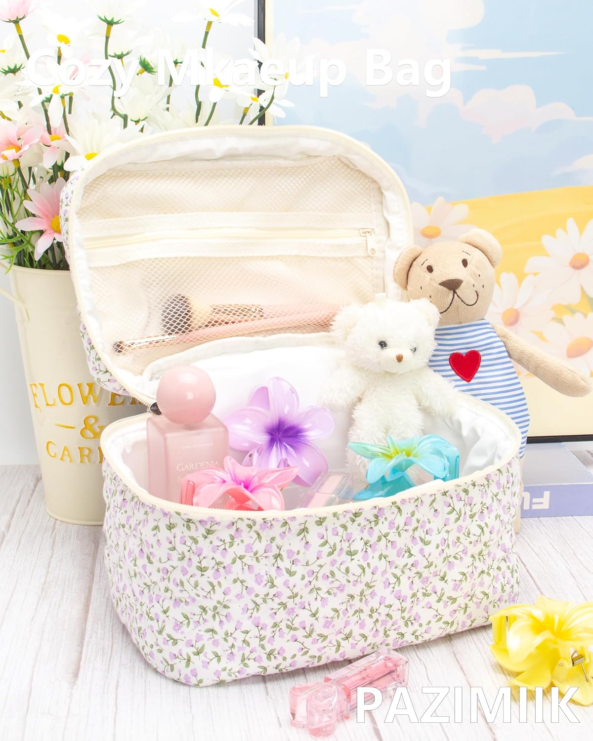 - Softness and Style: The quilted cotton exterior offers a soft and comfortable texture, combining style with functionality for your daily makeup needs.