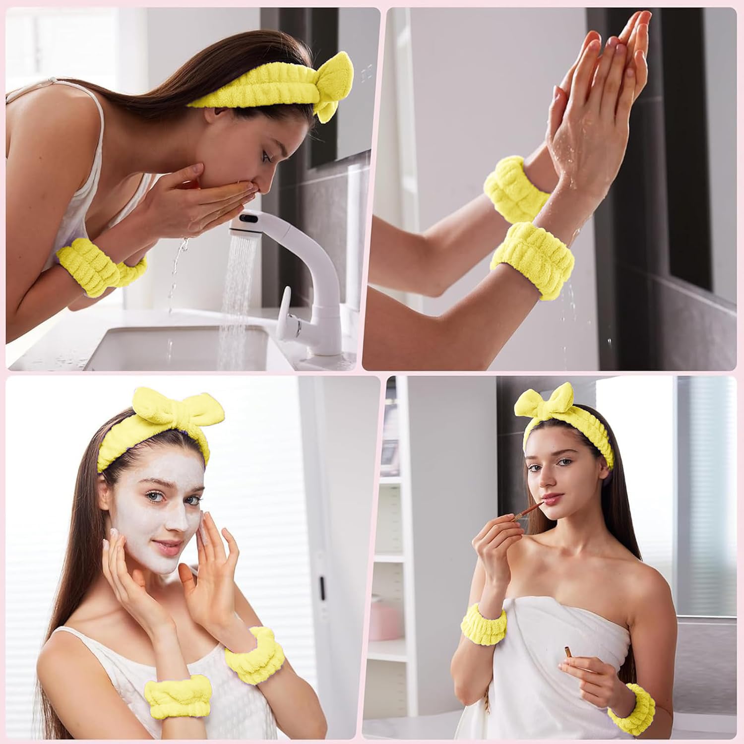 16pcs Skincare Headband Set, Headband Set for Face Washing Spa and Makeup, Including 1 Hairband, Wristband, 3 Hair Claw Clips and 10 Hair Ties, with Box, Gift for Women and Girls, Yellow