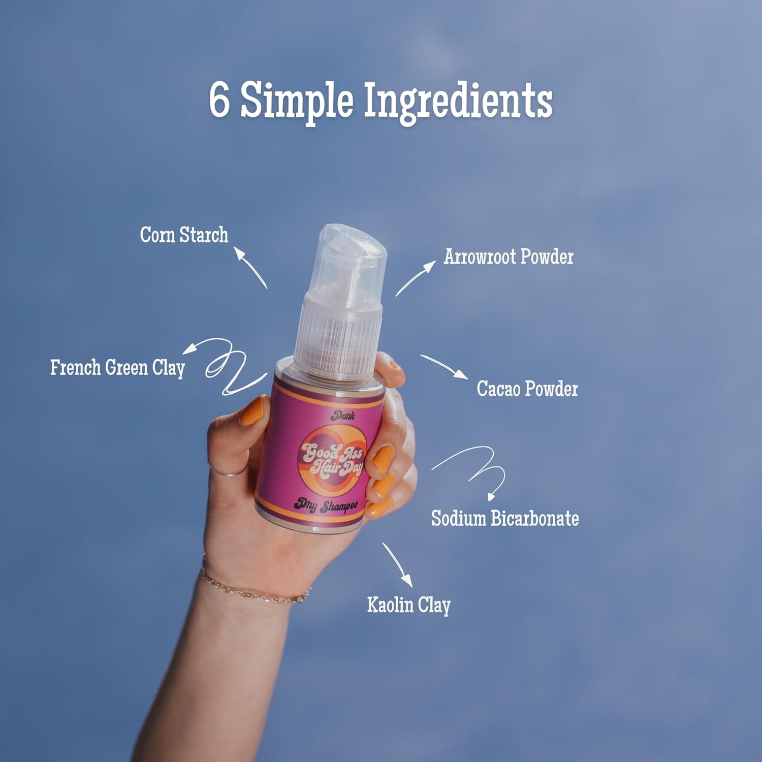 Good A Hair Day Dry Shampoo Powder – Non-Aerosol, Talc-Free, All-Natural, Absorbs Oil, Refreshes Hair Between Washes, Handmade in USA, Dark