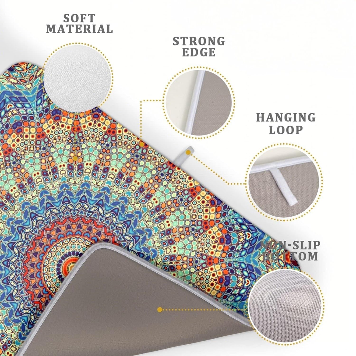 Bohemian Mandala Dish Drying Mat for Kitchen Counter Boho Microfiber Dish Drying Mats 18 x 24 Inch with High Absorbent Reversible Microfiber Dish Drying Pad Rack Mat for Coffee Bar
