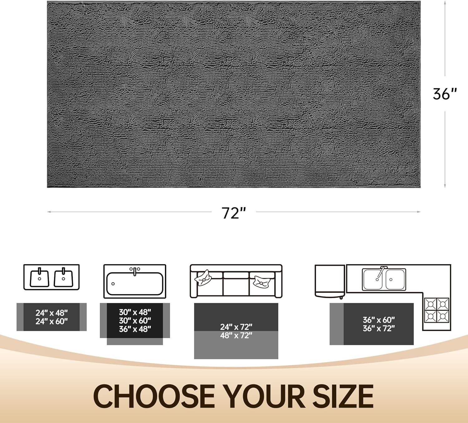 Amyracel Bathroom Rug Mat 36x72, Thick Soft Quick Dry Absorbent Chenille Bath Rug, Rubber Back Non Slip Machine Washable Bath Mat for Bathroom Shower Tub Floor