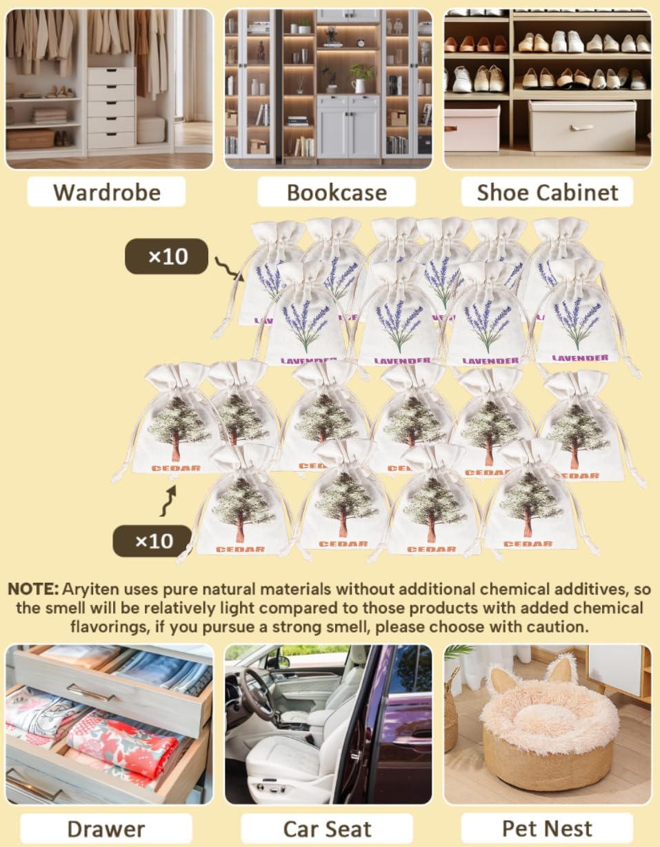 20 Pack Cedar Chips and Natural Dried Lavender Sachets Bags - Stop Clothes Damage, Cedar and Lavendar Home Fragrance Sachets for Drawers and Closets