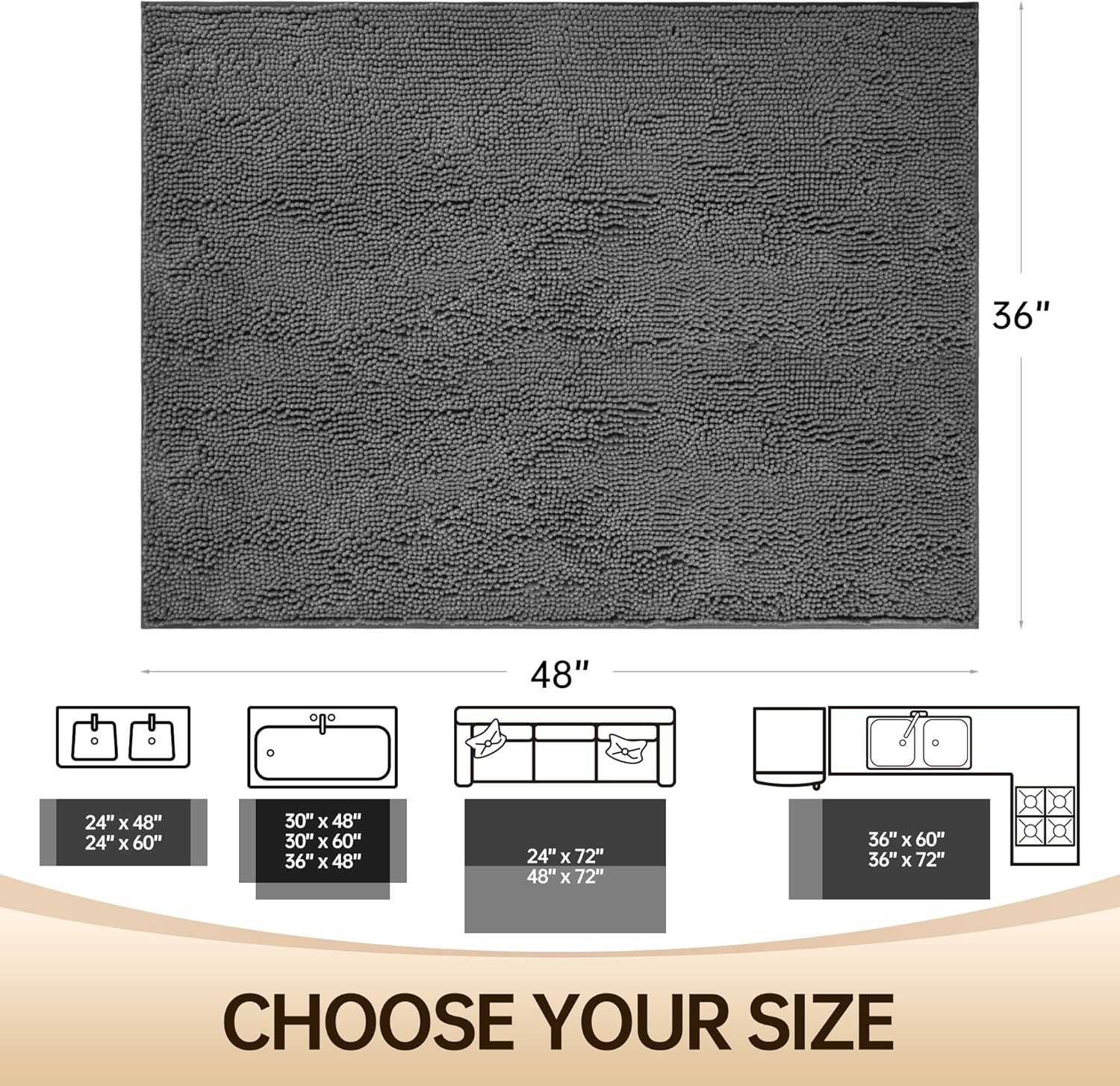 Amyracel Bathroom Rug Mat 36x48, Thick Soft Quick Dry Absorbent Chenille Bath Rug, Rubber Back Non Slip Machine Washable Bath Mat for Bathroom Shower Tub Floor
