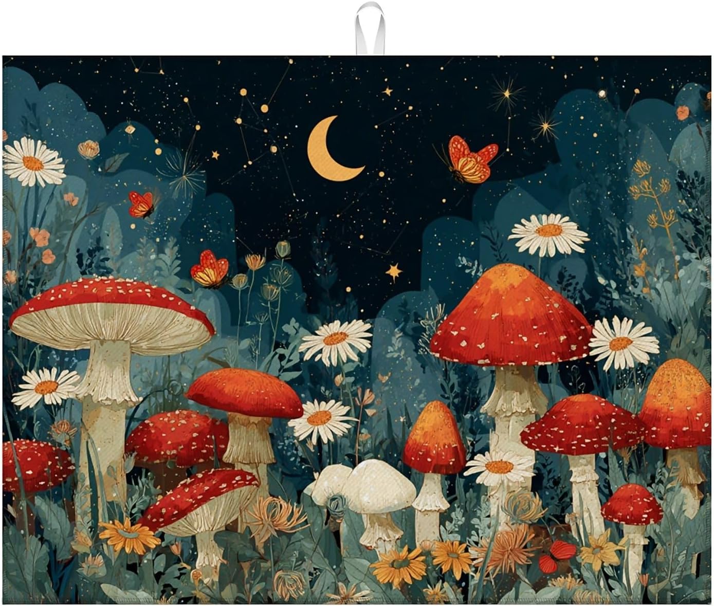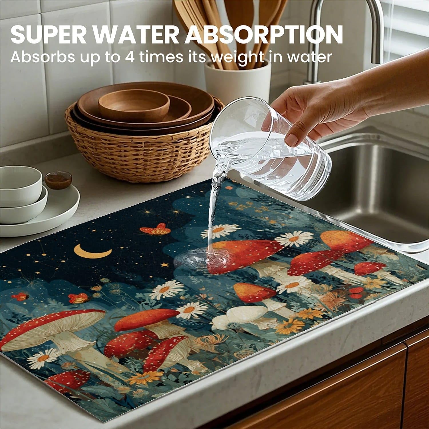 Dish Drying Mat For Kitchen Counter, Black Mushroom Microfiber Absorbent Dish Drainer Rack Pad Reusable Large 18x24in Drying Mat