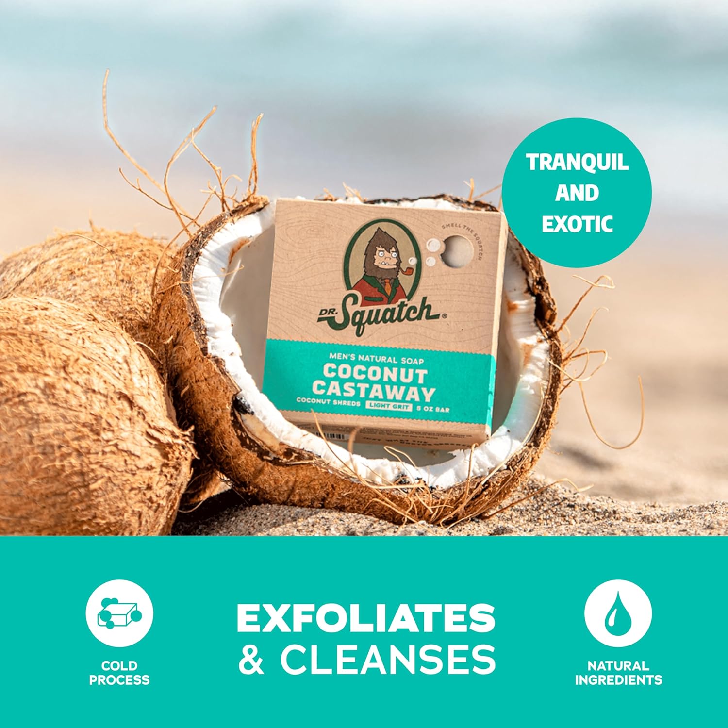 - RAISE THE BAR - Upgrade your shower with our sudstastic soaps featuring one of Dr. Squatch’s favorite scents: Coconut Castaway.