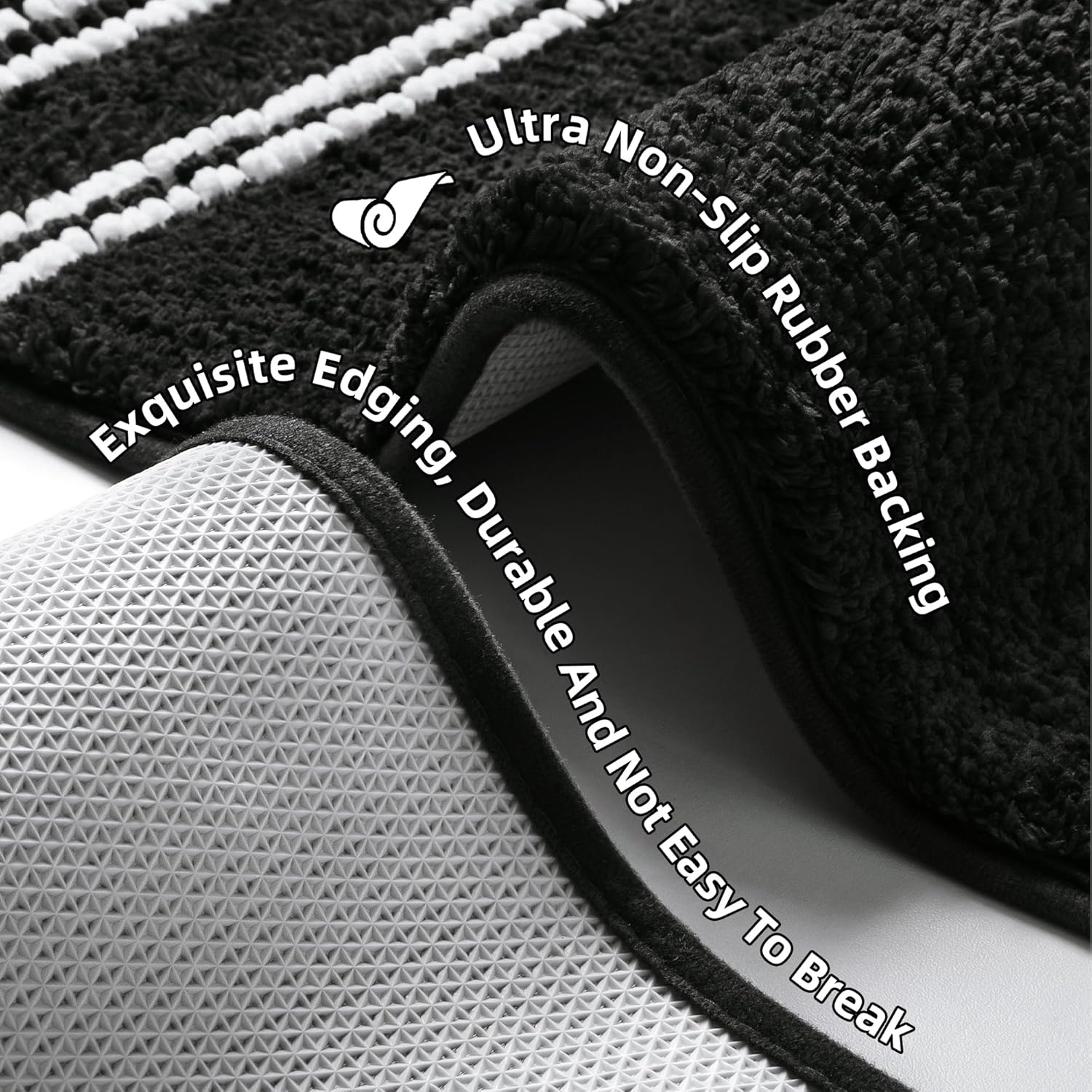 Bathroom Rugs 20x32 Extra Soft Absorbent Bath Mat Chenille Non Slip Shower Mat Rubber Backing Machine Washable Bath Mats for Bathroom Shaggy Black Bath Rugs for Tub, Hallway