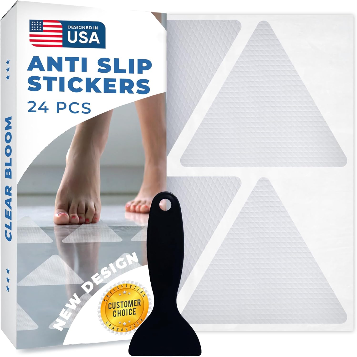 Anti Slip Shower Stickers 24 PCS, Invisible Non-Slip Shower Strips for Adults, Premium Adhesive Bath Tub Stickers (Clear)
