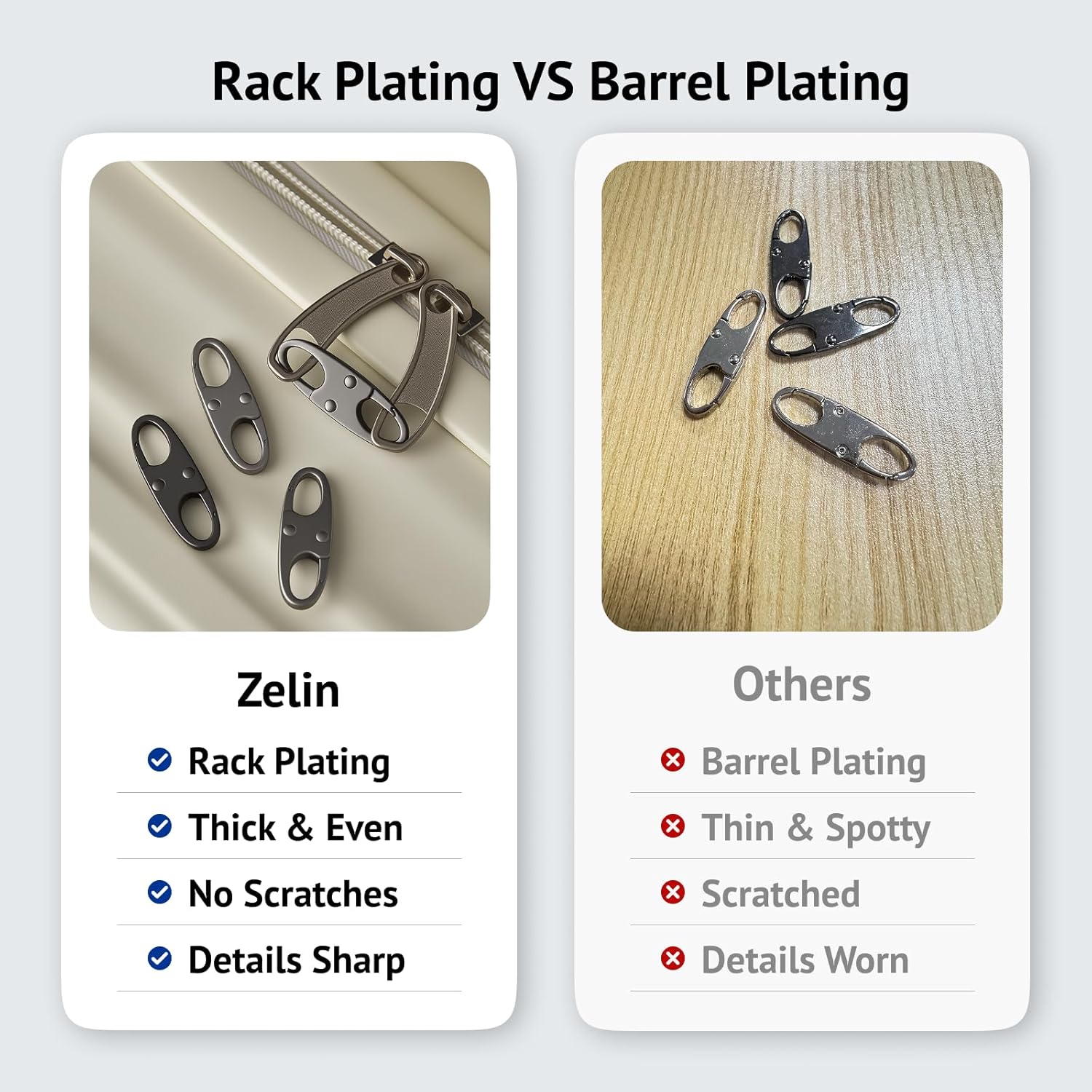 - All-Weather Durability: Zinc-alloy zipper pull replacement, using stainless steel spring plating coating, durable, long-term use is not easy to rust. Zinc alloys have lower density, are lighter than conventional metals, which have higher mechanical strength and tensile properties, and can withstand frequent pulling and pressure.