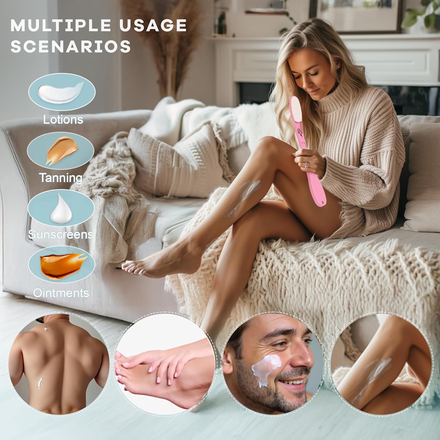 - VERSATILE USE: Perfect for applying sunscreens, moisturizers, self-tanners, and other body lotions independently without assistance