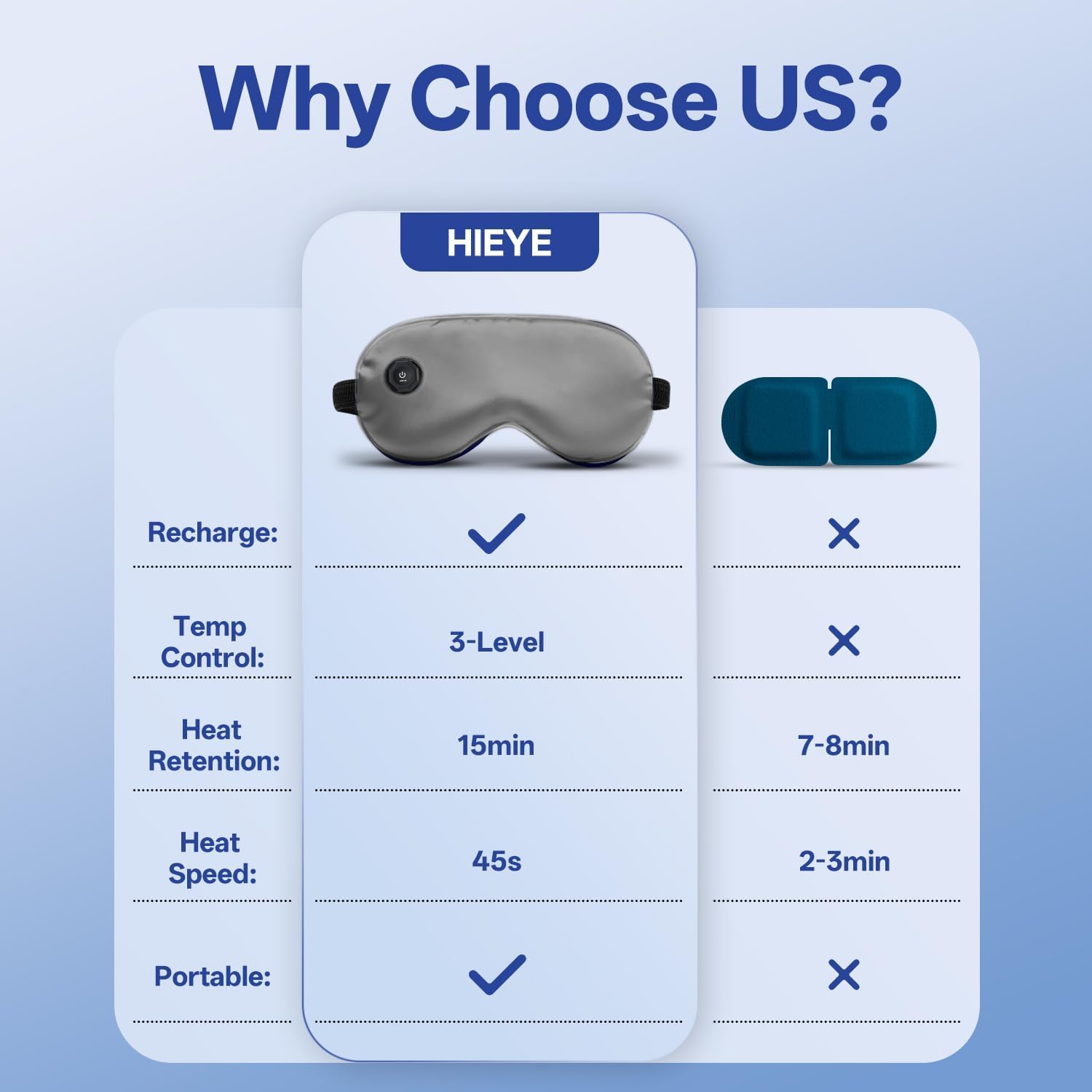 - 【3-Temp Therapy for Dry Eye Relief】 Ease dry eyes, styes, and sinus pain with medical-level moist heat at three precise settings (113°F/131°F/149°F). Our heated eye mask delivers deep-penetrating warm compress therapy to visibly reduce inflammation, eye fatigue, and dark circles.