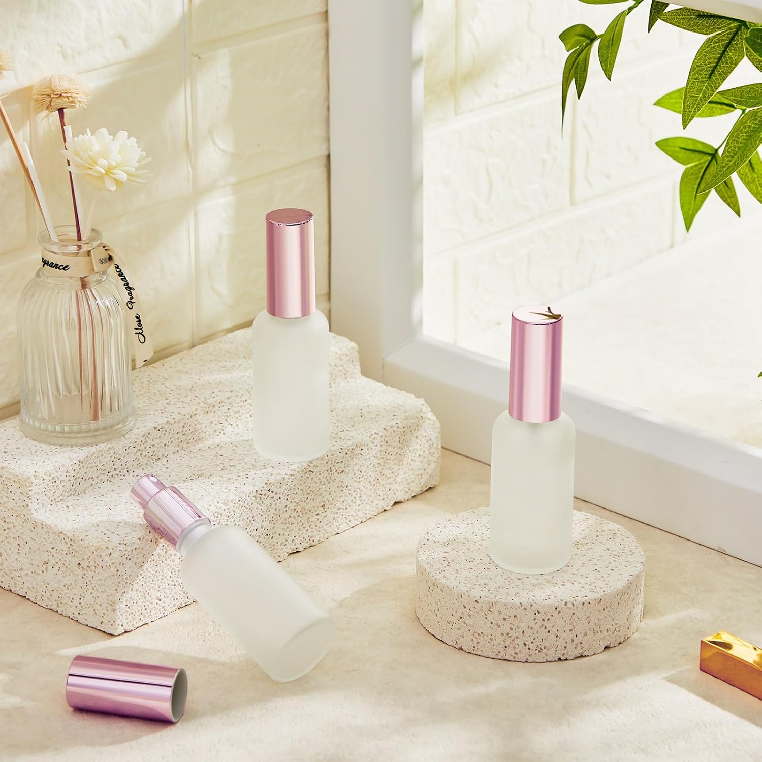 - Elegant Frosted Design: our fine mist spray bottles are designed with frosted glass body and rose gold cap cover, which is exquisite and elegant, not only a perfume bottle, but also a good ornament on your dressing table, and the frosted design can avoid inner liquid contact with light directly, bringing convenience to your storage