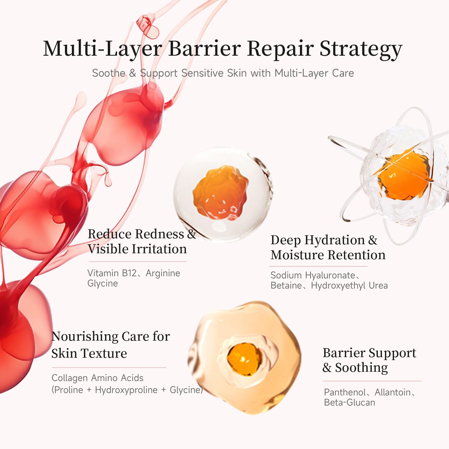 - Targeted Barrier Repair & Redness Relief – Powered by Amino Acids (Arginine, Proline, Hydroxyproline, Glycine) and Vitamin B12, this serum supports weakened skin barrier, helps calm redness, and improves resilience for sensitive skin.