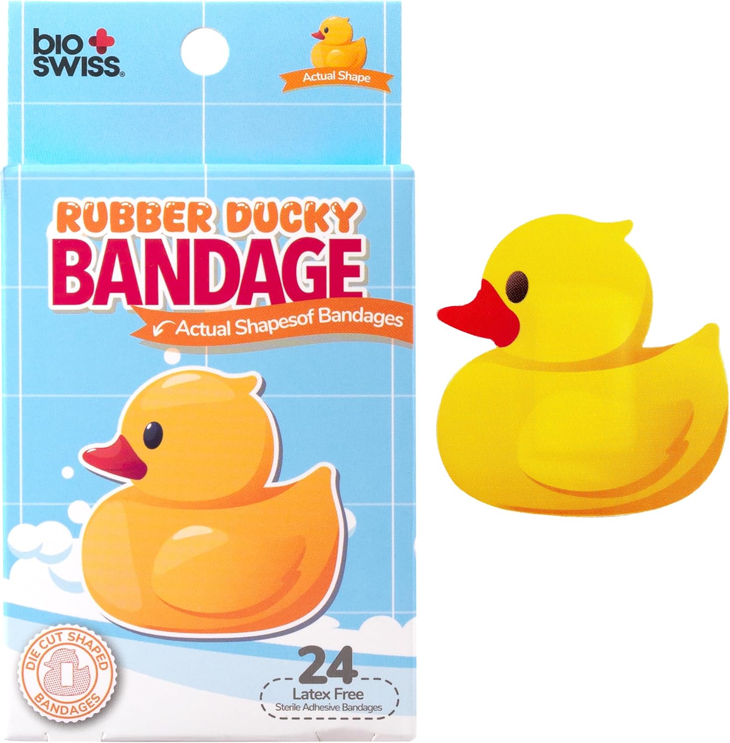 - 24 RUBBER DUCKY KIDS BANDAGES: Fun rubber duck-shaped adhesive bandages pack helps protect cuts, scrapes, and minor wounds while making healing less stressful for children