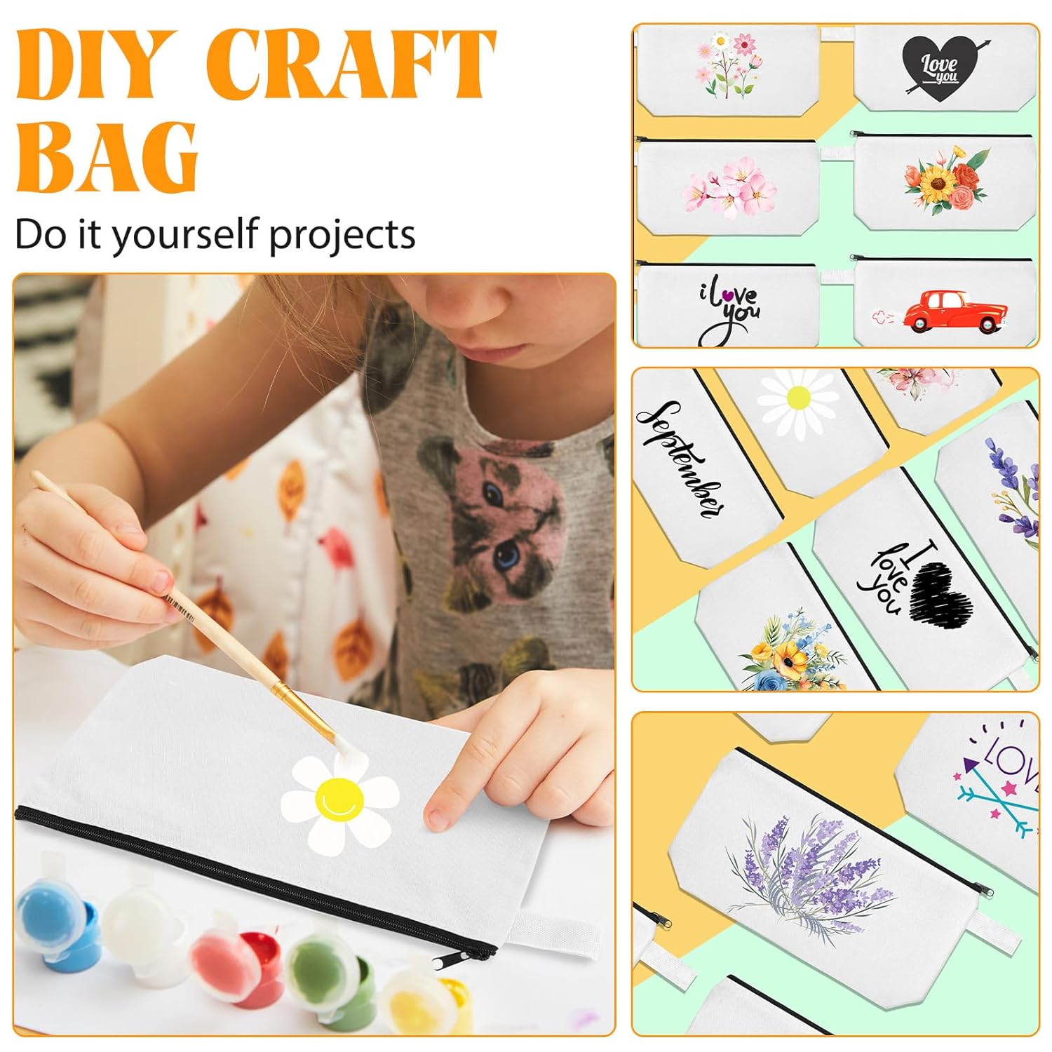 Saintrygo 30 Pcs Makeup Bag Travel Canvas Cosmetic Bag Bulk Multipurpose Small Makeup Pouch for Purse Portable Blank Zipper Toiletry Organizer DIY for Women Assorted Color(White,9.8 x 5 x 2 Inch)