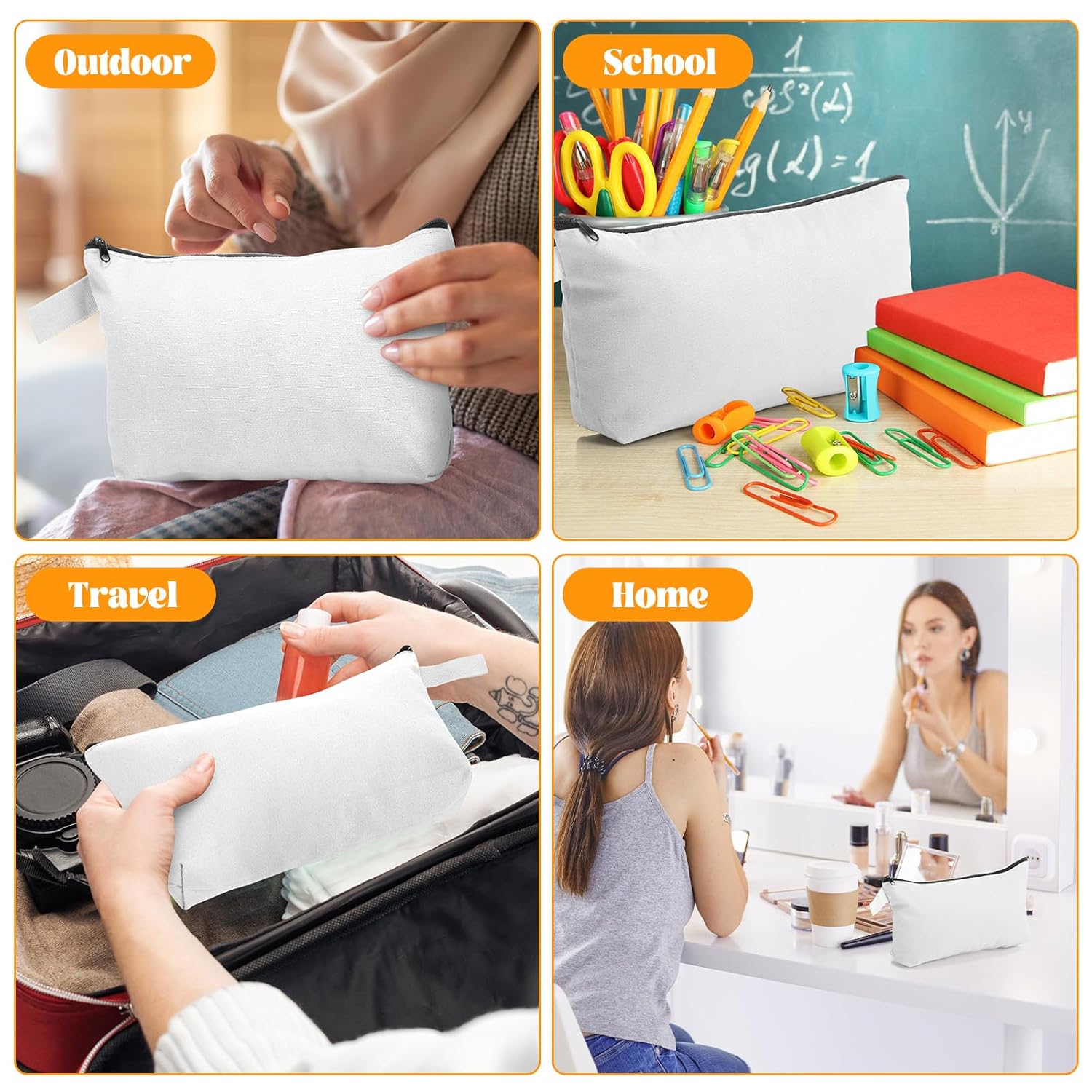 - Package Included: you will received 30 pieces white makeup bags to meet your various needs; They can be applied as cosmetic bags, toiletry bags, travel bags, storage bags, gift bags, coin purse, etc.; The makeup bag set can help you organize and store items in an orderly manner