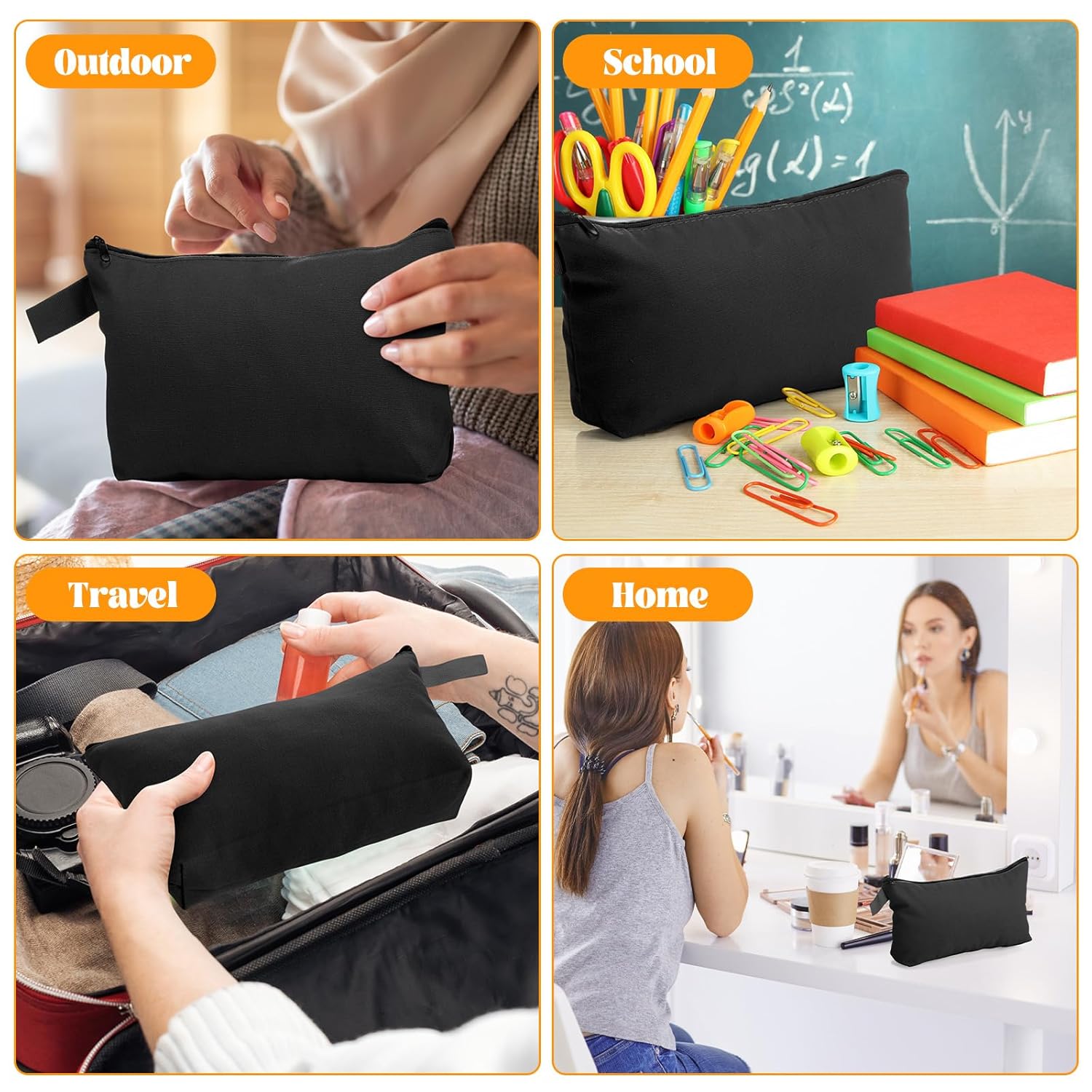 Saintrygo 30 Pcs Makeup Bag Travel Canvas Cosmetic Bag Bulk Multipurpose Small Makeup Pouch for Purse Portable Blank Zipper Toiletry Organizer DIY for Women Assorted Color (Black,9.8 x 5 x 2 Inch)
