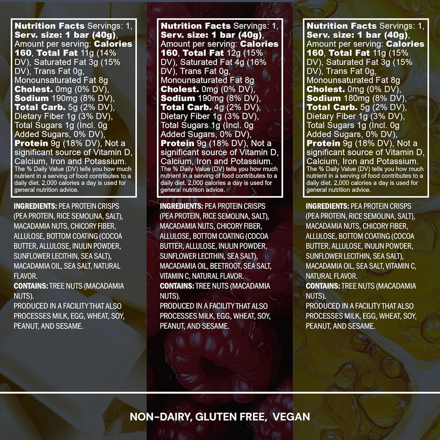 Blueprint by Bryan Johnson Macadamia Nut Protein Bars – Variety Pack Protein Bars - Lemon, White Cocoa & Raspberry – Vegan, Low Sugar, Keto-Friendly Snacks – Non-GMO, Raw Nut Bar– 9g Protein – 12 Pack