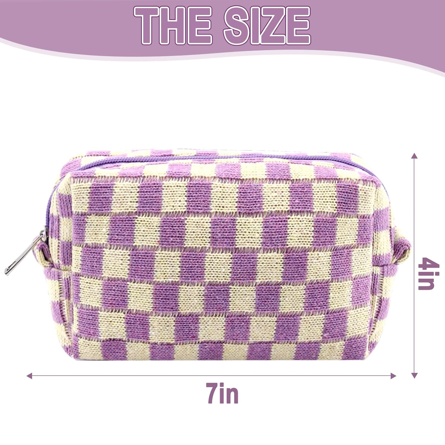 - LARGE CAPACITY AND PREMIUM MATERIAL: The cute makeup bag measure 7.1×4.3 inches, easy to carry. The checkered makeup bag is made of soft knitted fabric, easy to clean. The smaller ones can be used as pencil case or pencil pouch.This makeup travel bag can also hold small items such as makeup, skincare products, lipstick, eye shadow, eyebrow brush, etc. Makeup storage bag for women toiletries