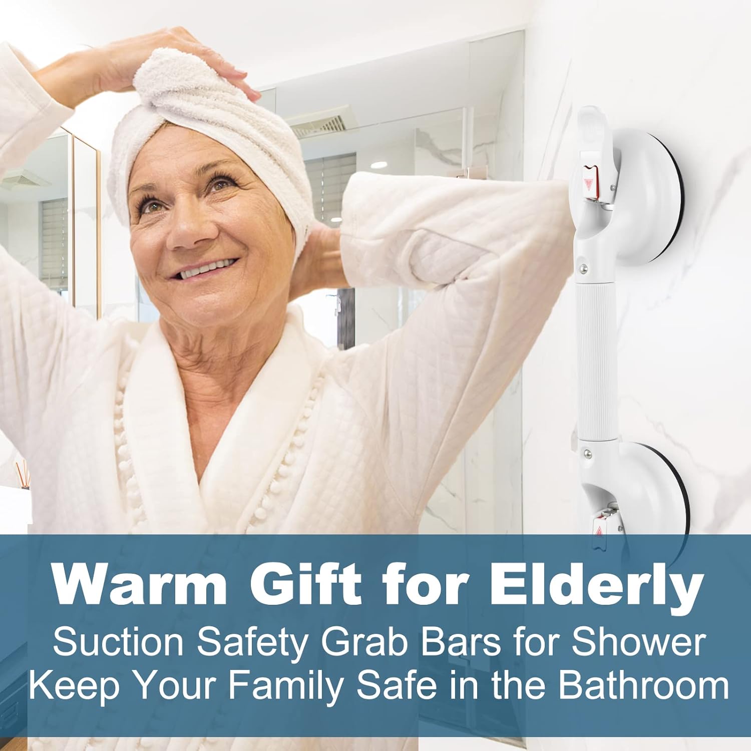 - 🐮【Best Gift for your family in need】As time flies, our parents needs more and more help, sometimes we couldn't help our parents or other family in need in the bathroom all the time. But this suction grab bars for shower can easily and safely instead of us to provide them with safe, effective and convenient help! This is the best gift we can give them. Shower grab bars for seniors. Shower bars for elderly suction. Shower handles for elderly suction is Great bathroom accessories for shower chair.