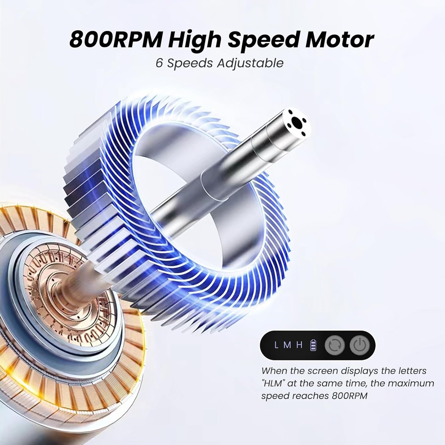 - Professional foot care: This foot grinder adopts an innovative 360° forward and reverse rotation design, with 6 adjustable speeds (300-800 rpm), which can easily remove dead skin, calluses and rough cuticles on the feet, restoring your feet to a delicate and smooth state.