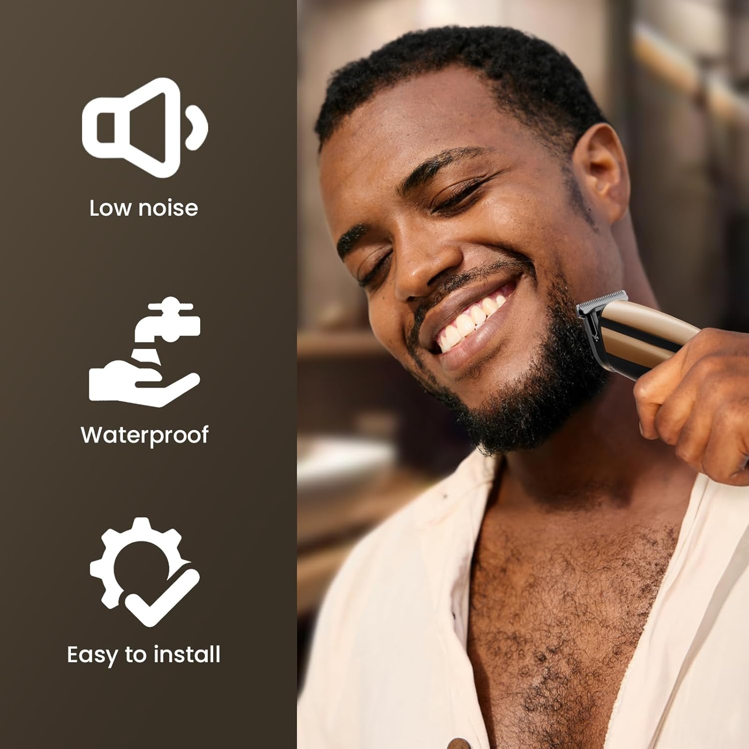 - Turbo Speed, Efficient Shaving: Equipped with a powerful motor, this cordless clippers for men has excellent hair cutting performance, full of power, and shaves quickly and smoothly without lag. Whether it is thick and hard hair or fine and soft hair, it can easily control it, ensuring smooth and clean trimming, presenting professional-level haircut results. Ideal for both personal use and professional barbers, this kit delivers consistent, high-quality results every time.