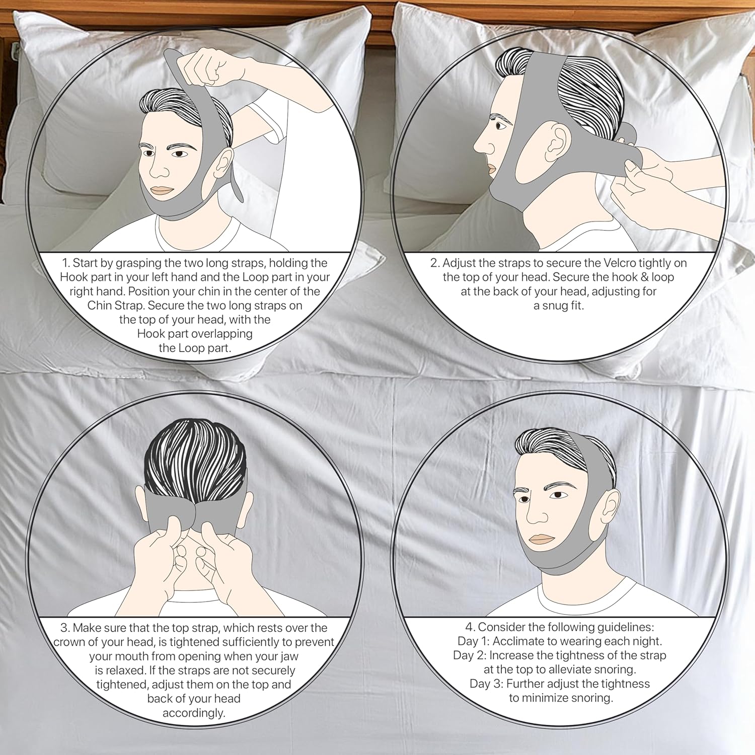 - Supports Closed-Mouth Positioning: This chin strap gently supports the chin, helping to keep the mouth closed during sleep and encouraging nasal breathing, which contributes to a quieter and more peaceful sleep environment.