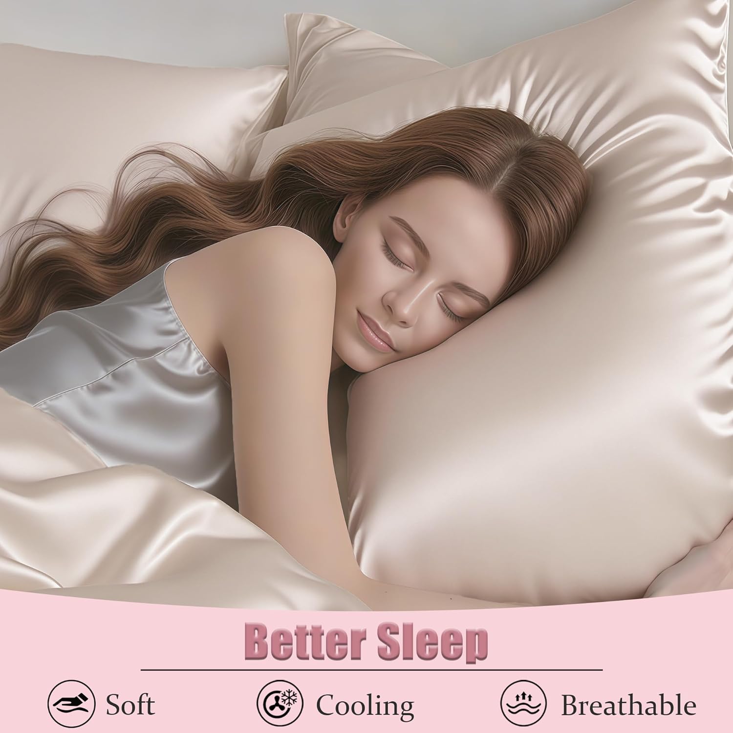 - 【Gentle on Skin & Hair】 Silk pillowcase for hair and skin, Hypoallergenic and breathable, reduces wrinkles, acne, and bedhead while locking in moisture. It is ideal for those with curly hair or who wants to improve their skin condition and sleep well