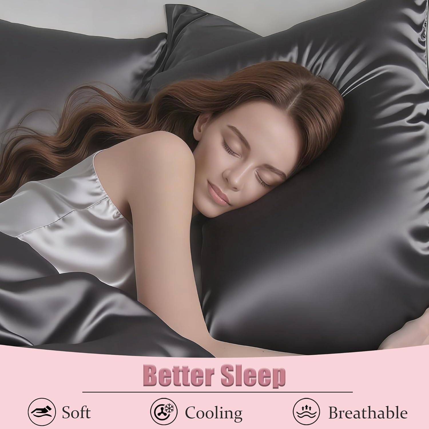 - 【Gentle on Skin & Hair】 Silk pillowcase for hair and skin, Hypoallergenic and breathable, reduces wrinkles, acne, and bedhead while locking in moisture. It is ideal for those with curly hair or who wants to improve their skin condition and sleep well