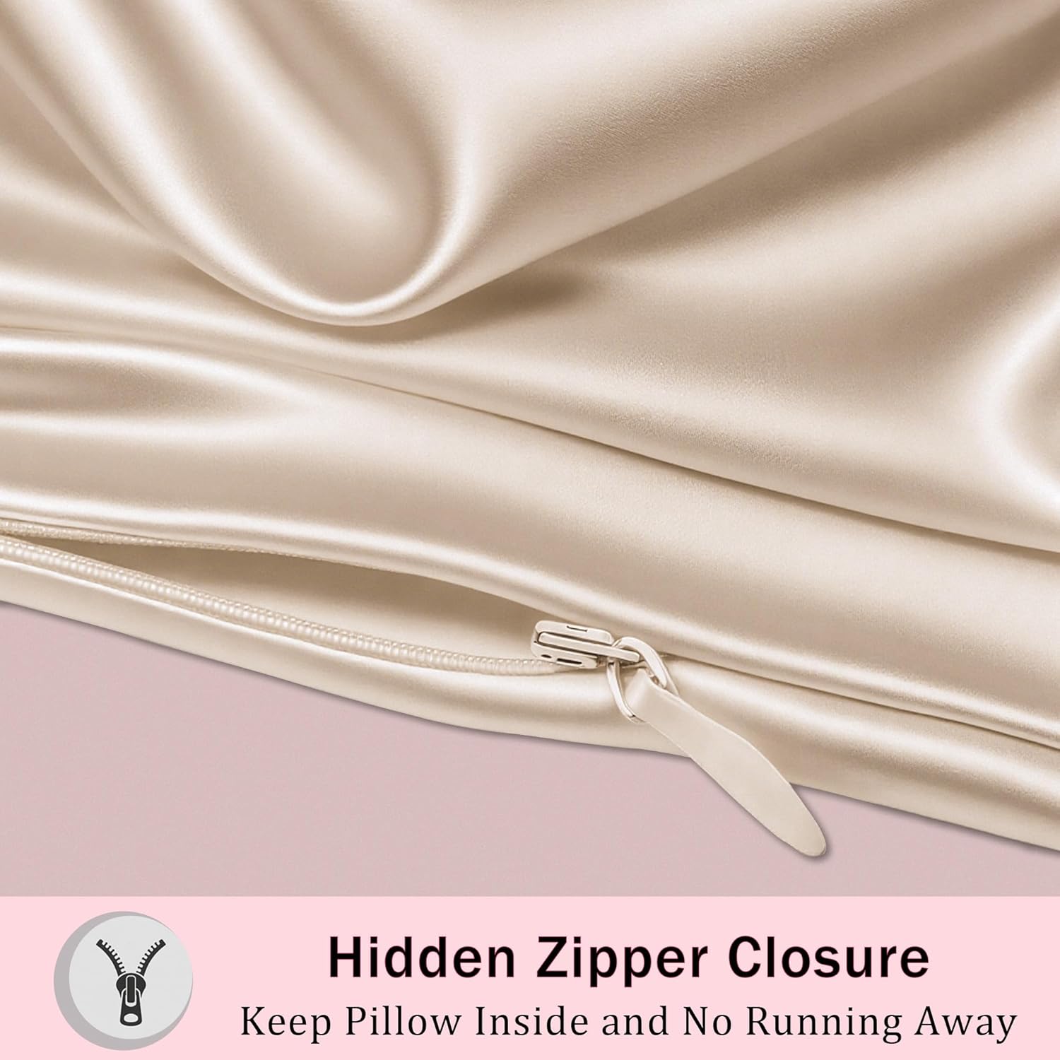 - 【Premium Zipper Closure】 Silk pillow case with hidden zipper design keeps pillow securely tucked in for a seamless look