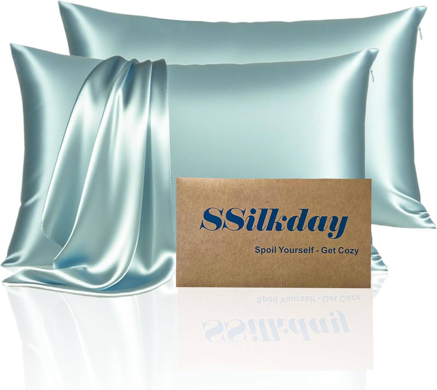 • 【Silk Pillow Cases 2 pack】 SSilkday Silk pillow cases are made from high quality silk with natural temperature regulation for cooler sleep and reduced frizz/hair breakage
