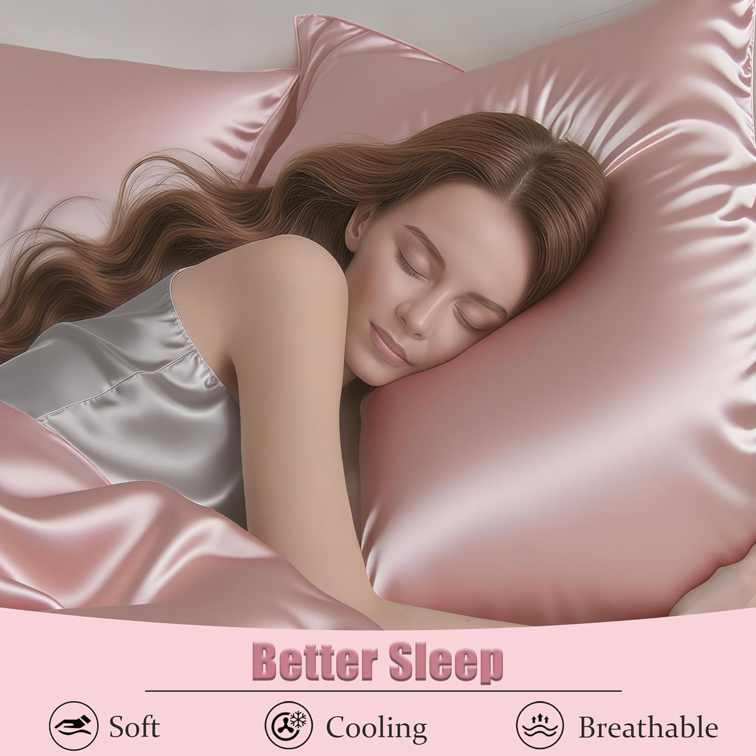 - 【Gentle on Skin & Hair】 Silk pillowcase for hair and skin, Hypoallergenic and breathable, reduces wrinkles, acne, and bedhead while locking in moisture. It is ideal for those with curly hair or who wants to improve their skin condition and sleep well